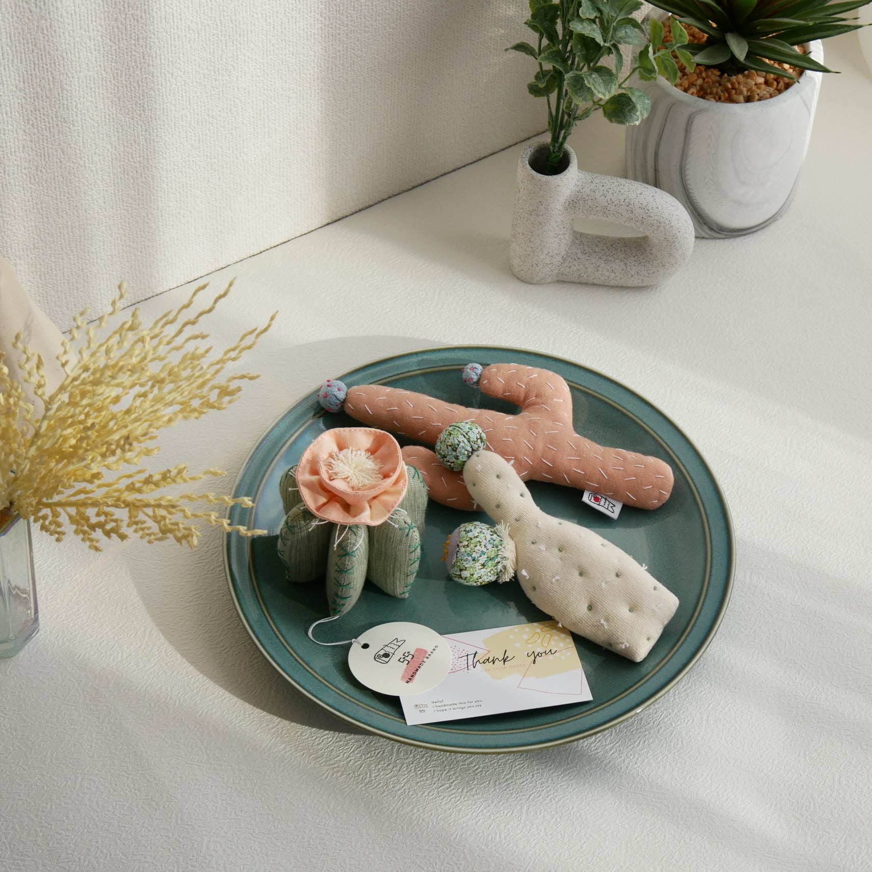 おしゃれで可愛い、音が鳴るサボテンのラトル3点セットです。 パステルカラーの優しい色合いと、遊び心あるデザインで、 出産祝い等のプレゼントにピッタリです♪ 赤ちゃんが握ったり振ったりして遊べるのはもちろん、 フェルトの鉢付きなので、インテリアとしてお部屋に飾ったり、 ベビーフォトの小物としても使用できます。 一つ一つ、優しい音色がする仕様になっていて、 使用している素材は全てコットン100%です。 添付写真のように、ギフトラッピングしてお届けします。 ※ラッピング資材は多少変更する場合がございますので予めご了承ください。 素材:綿100%