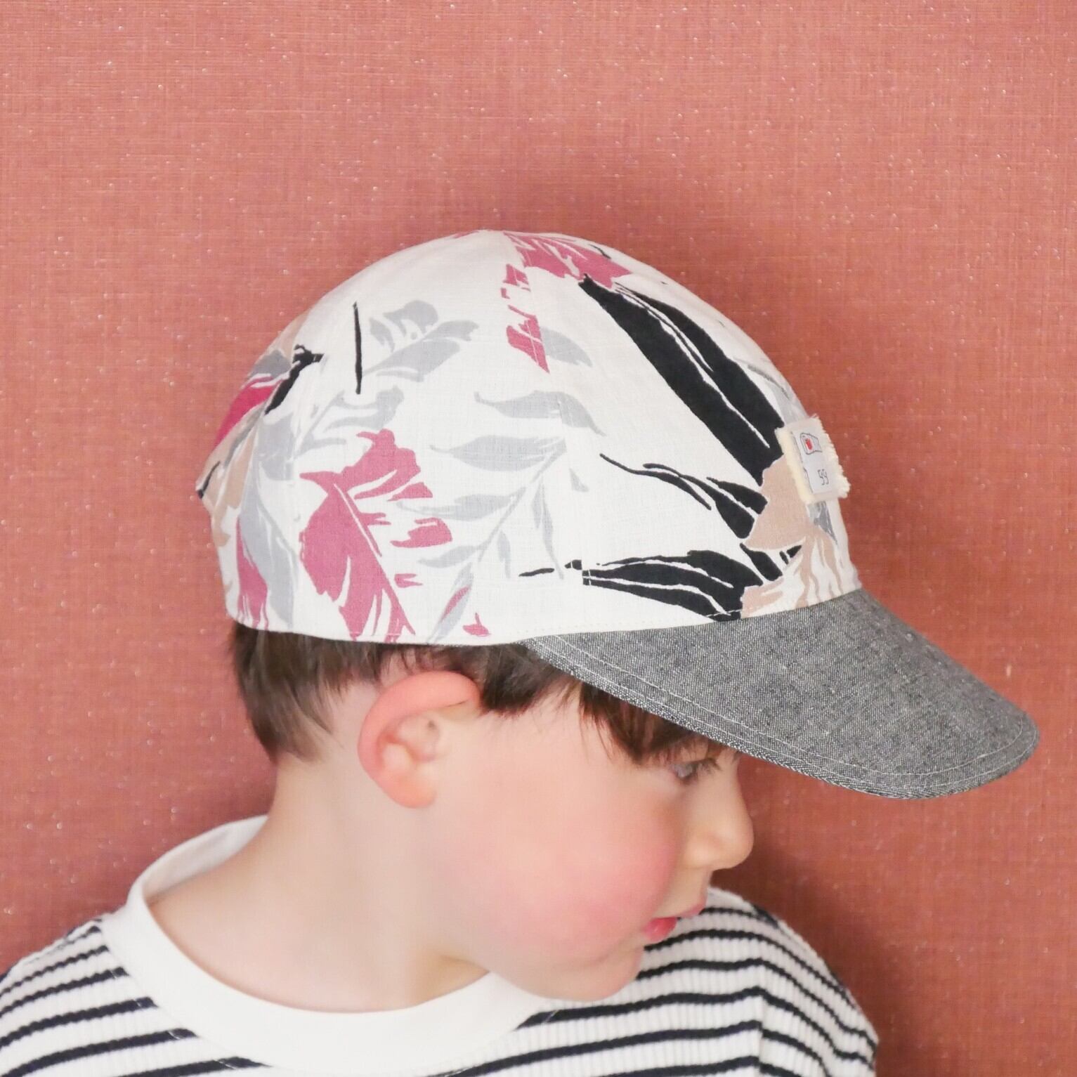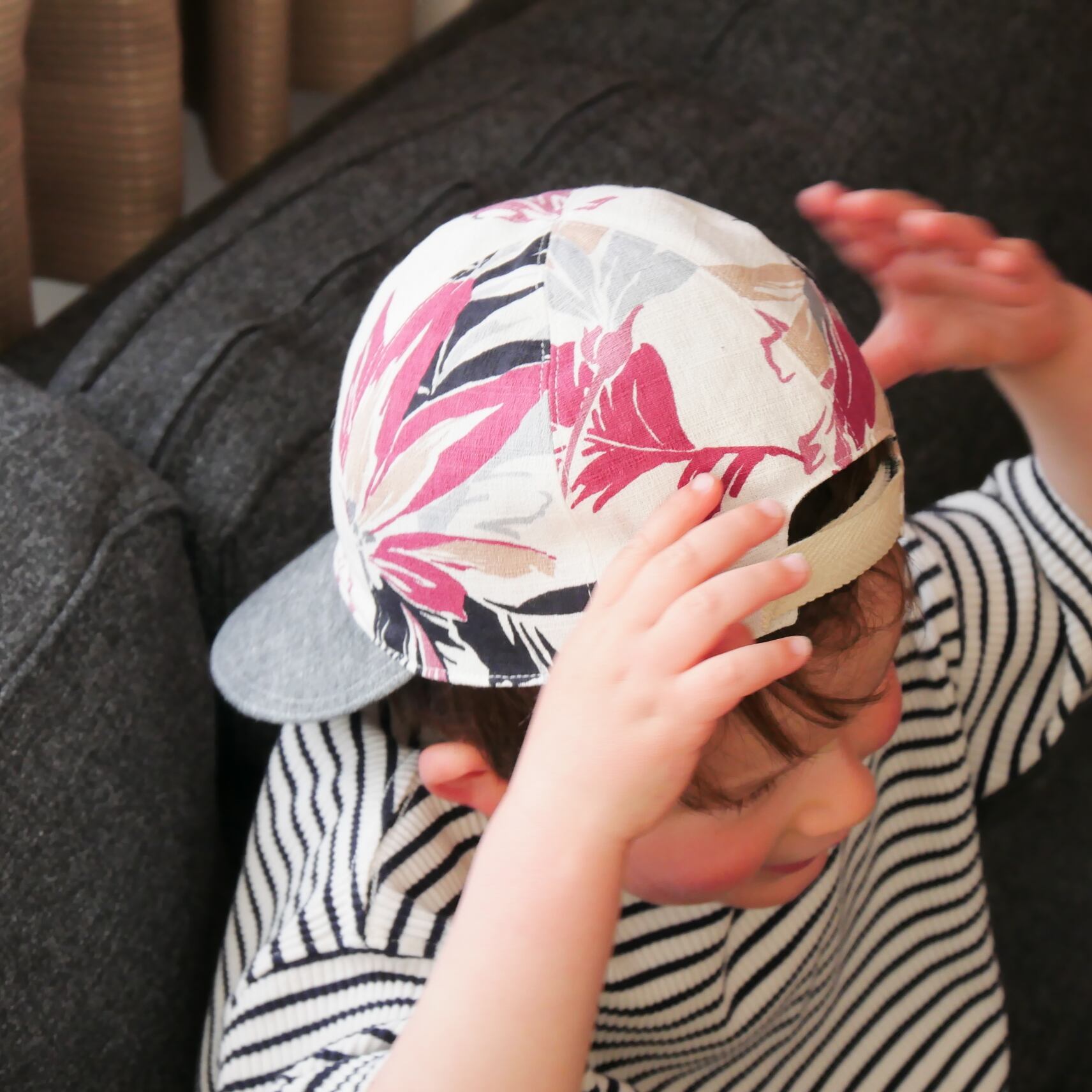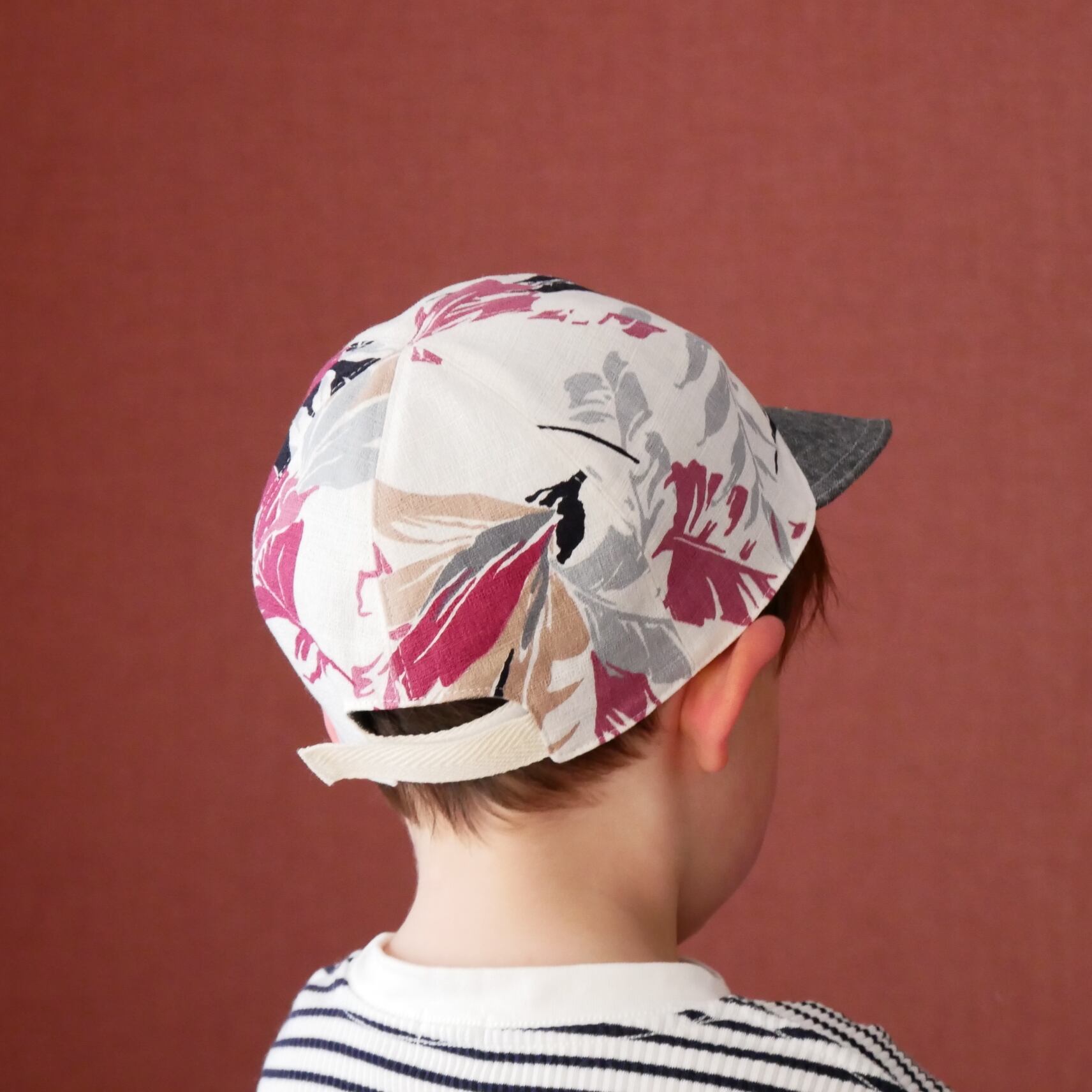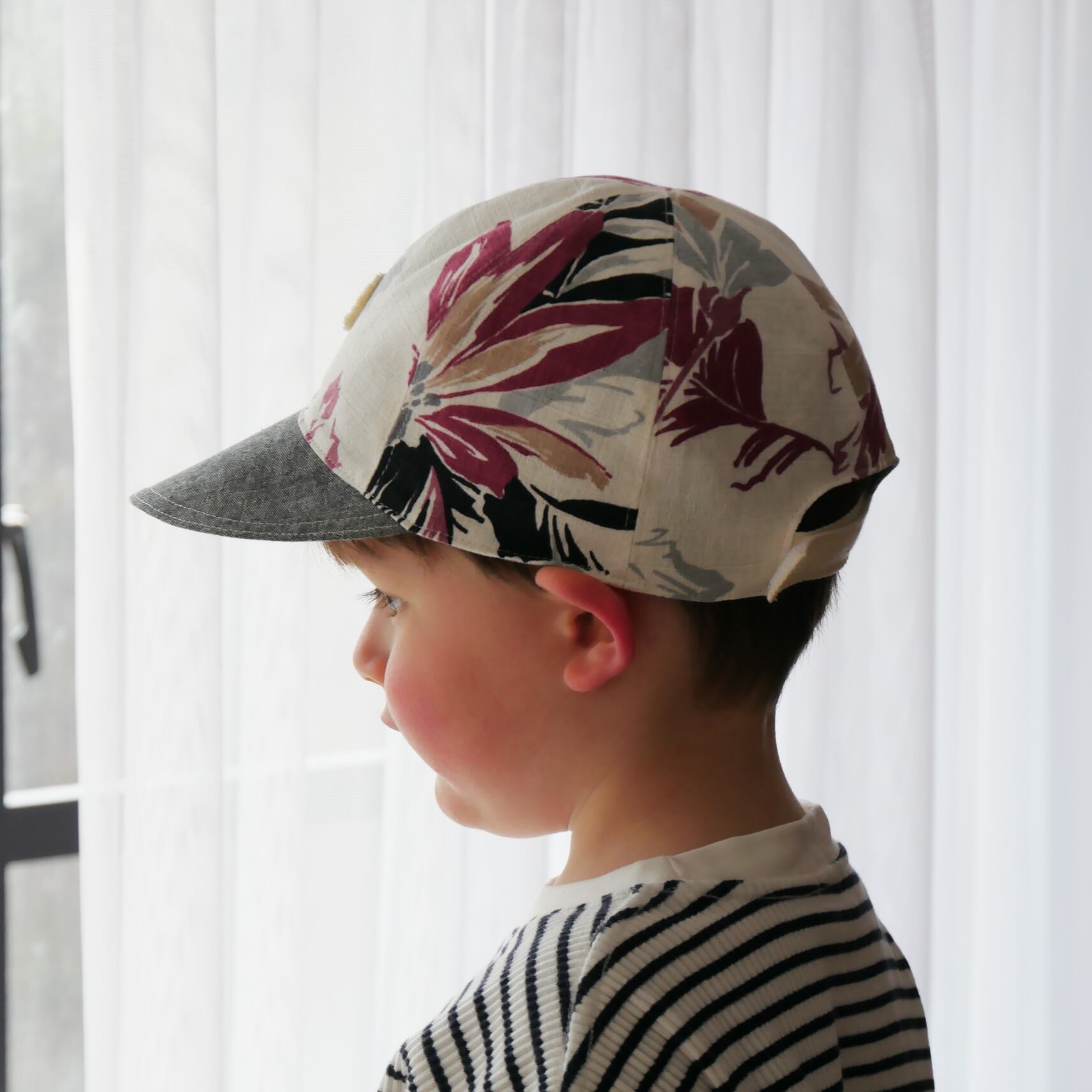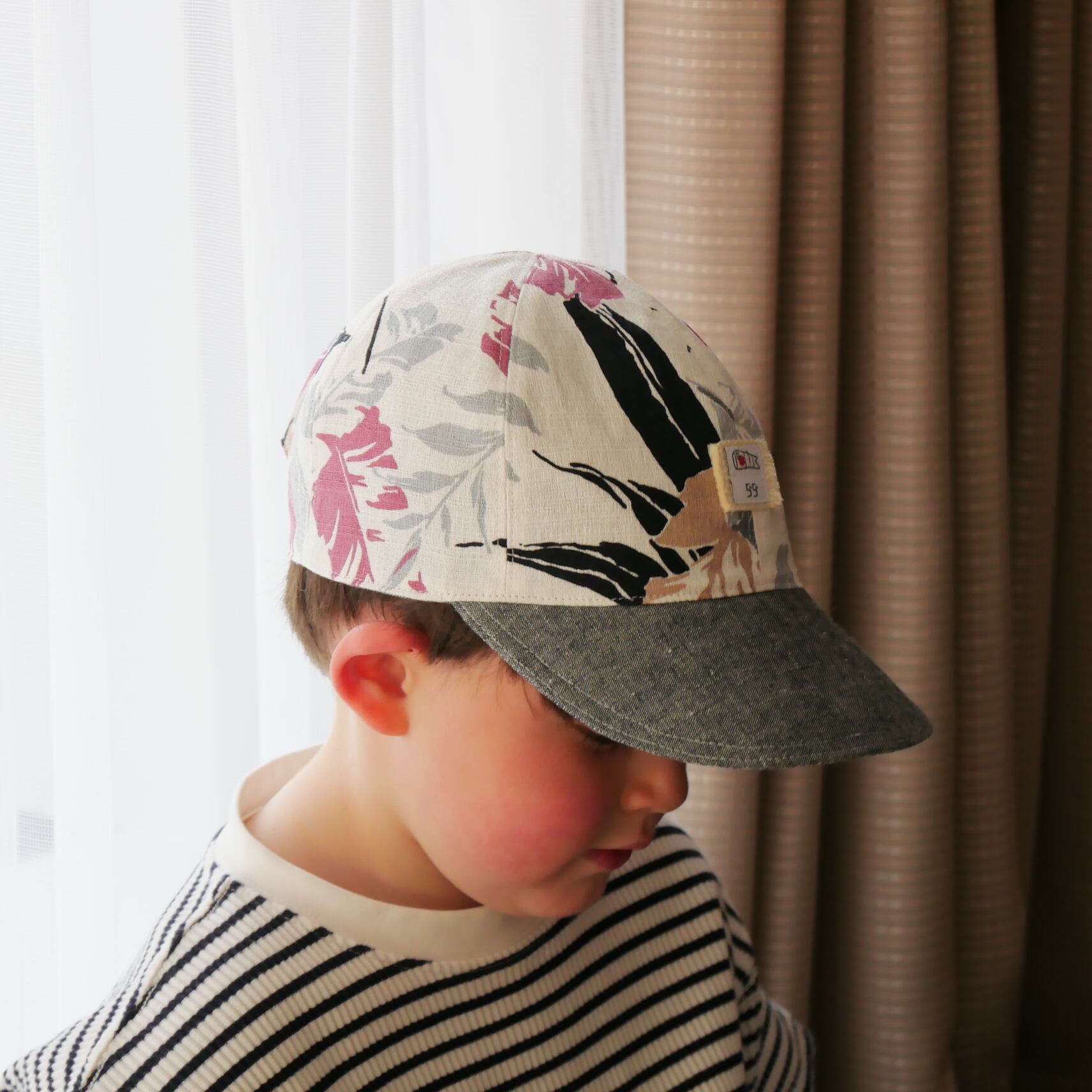 大人かわいい色合いのトロピカル模様が印象的なキッズ用キャップです。