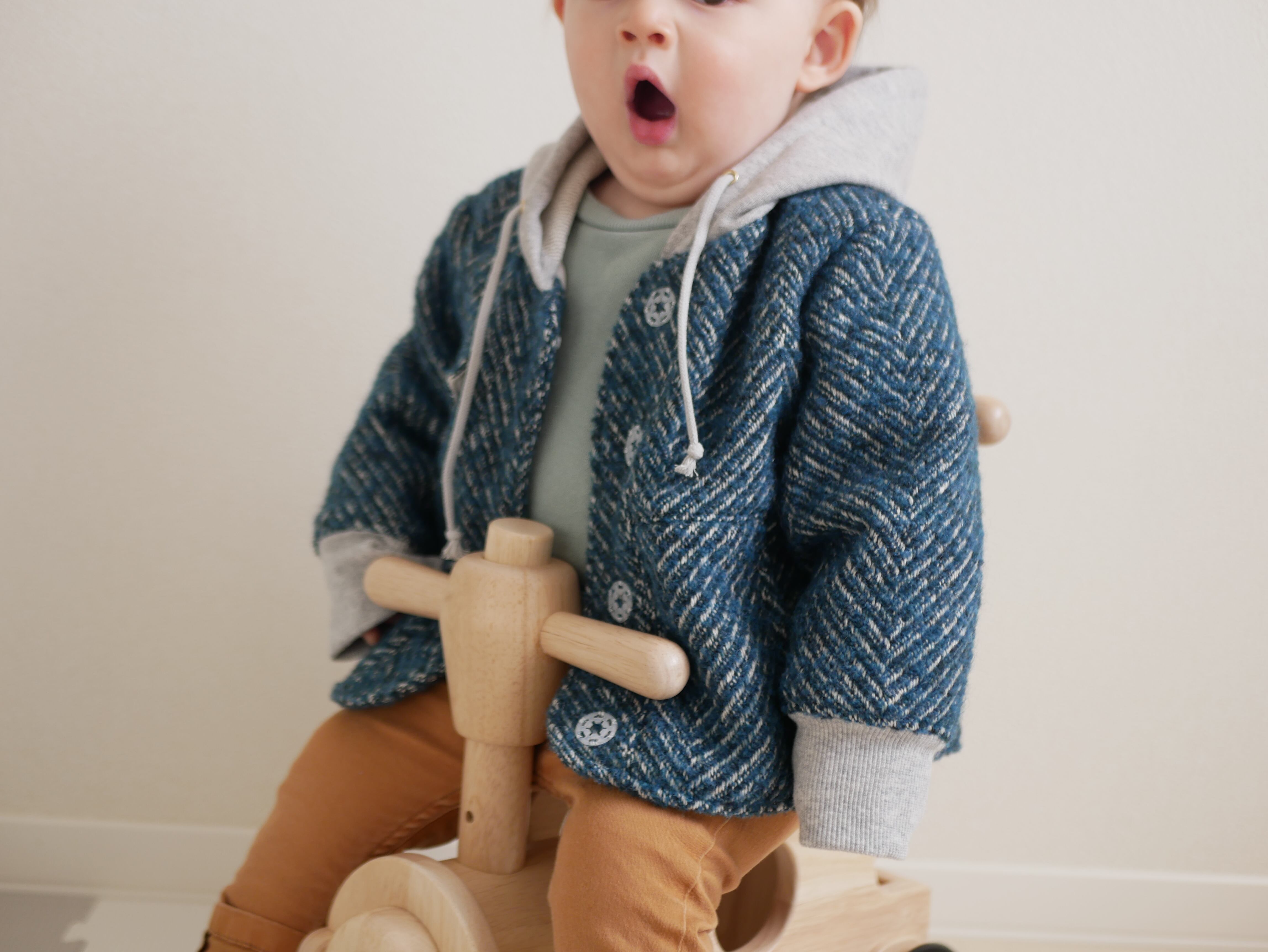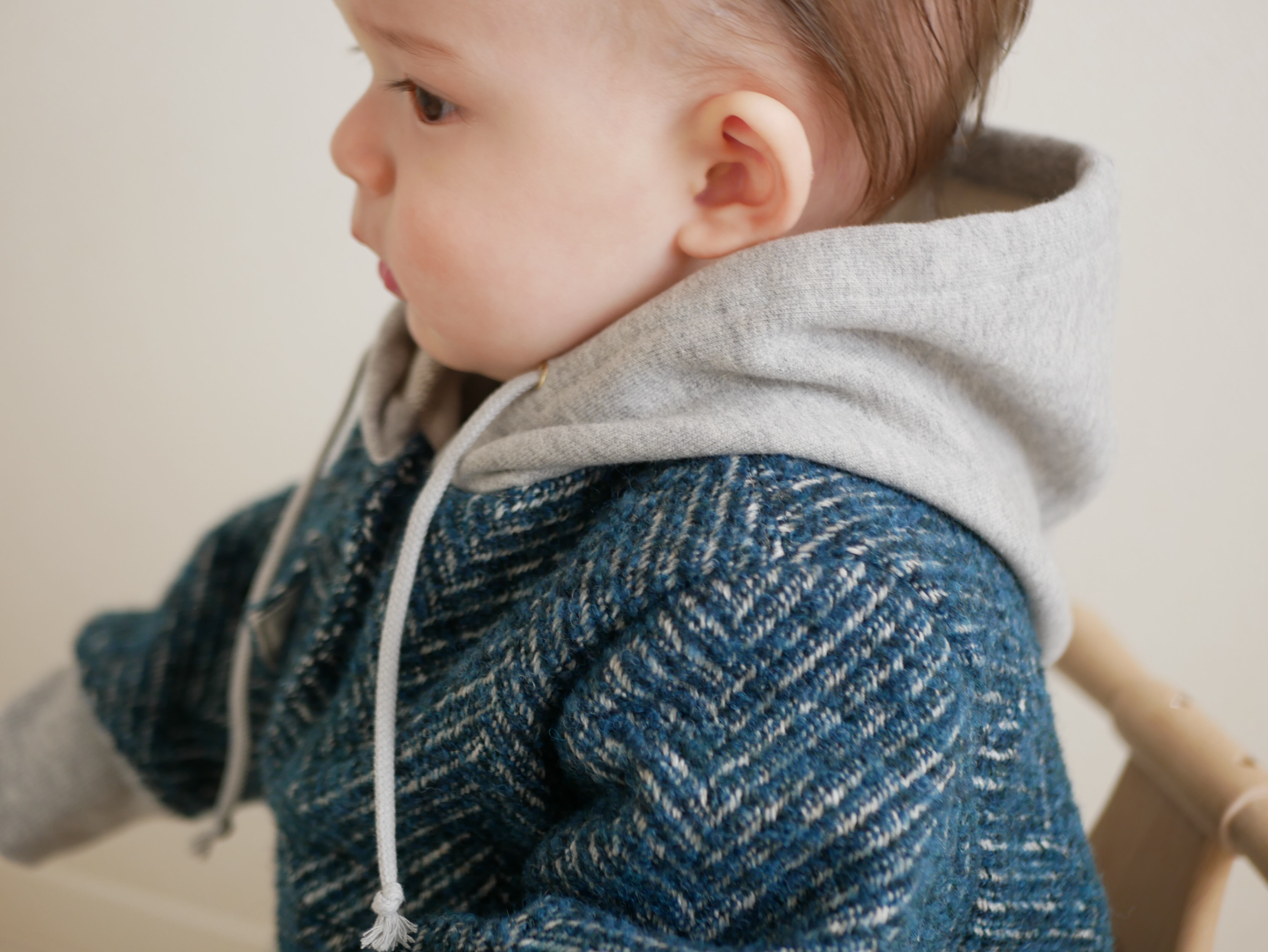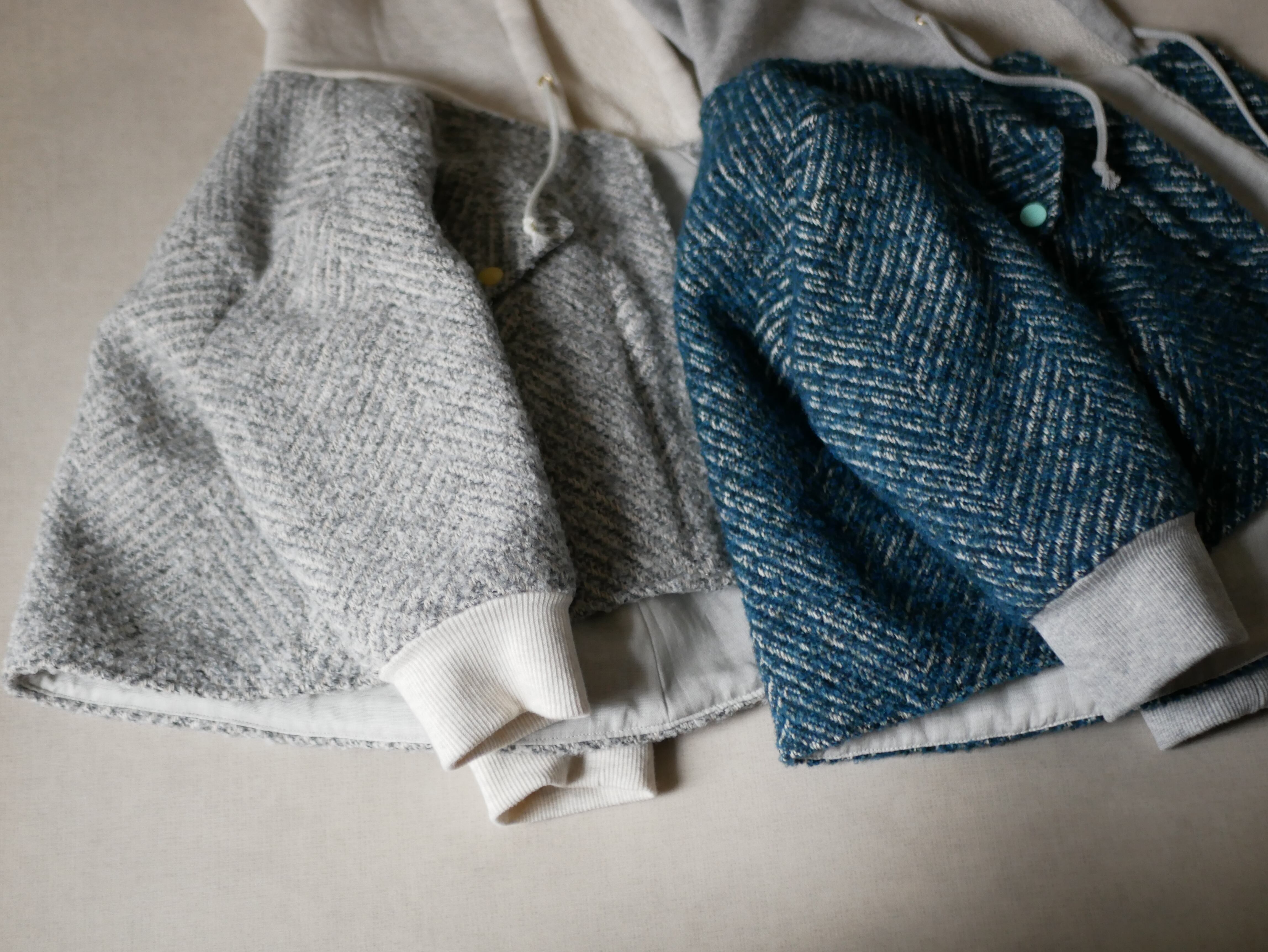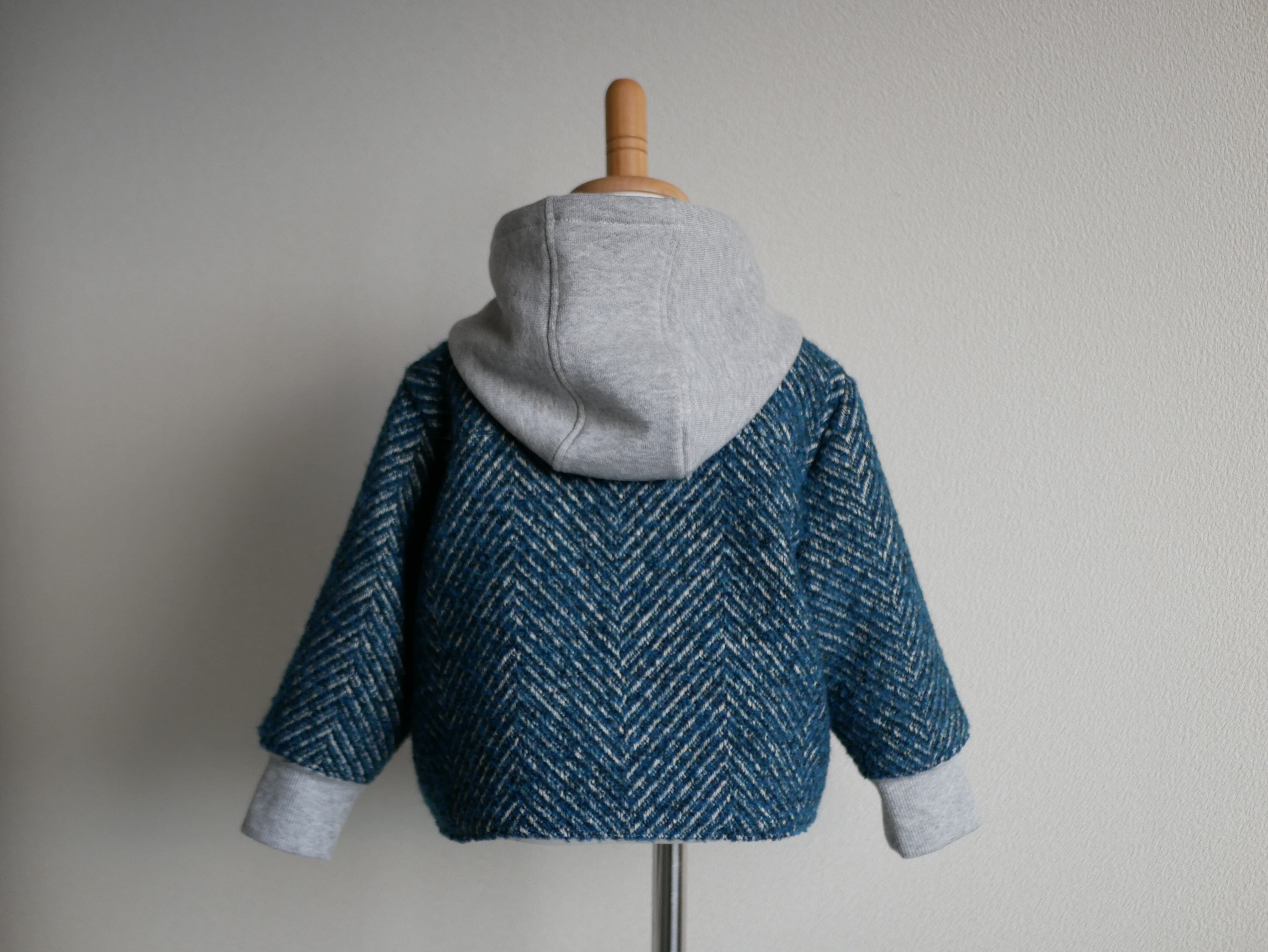 イタリア産のヘリンボーンツイードに、裏毛を切り替えた秋冬にぴったりのジャケットです。