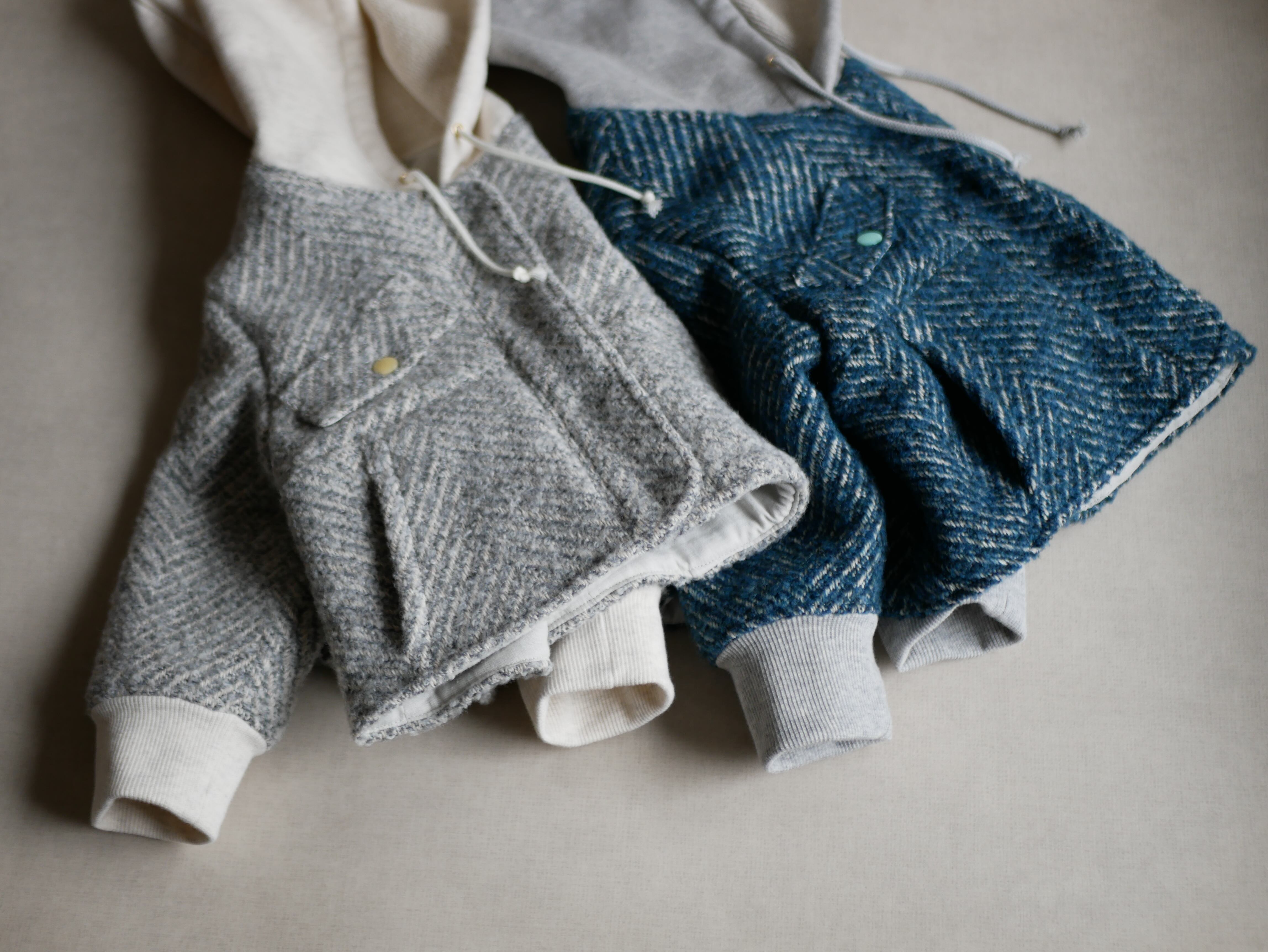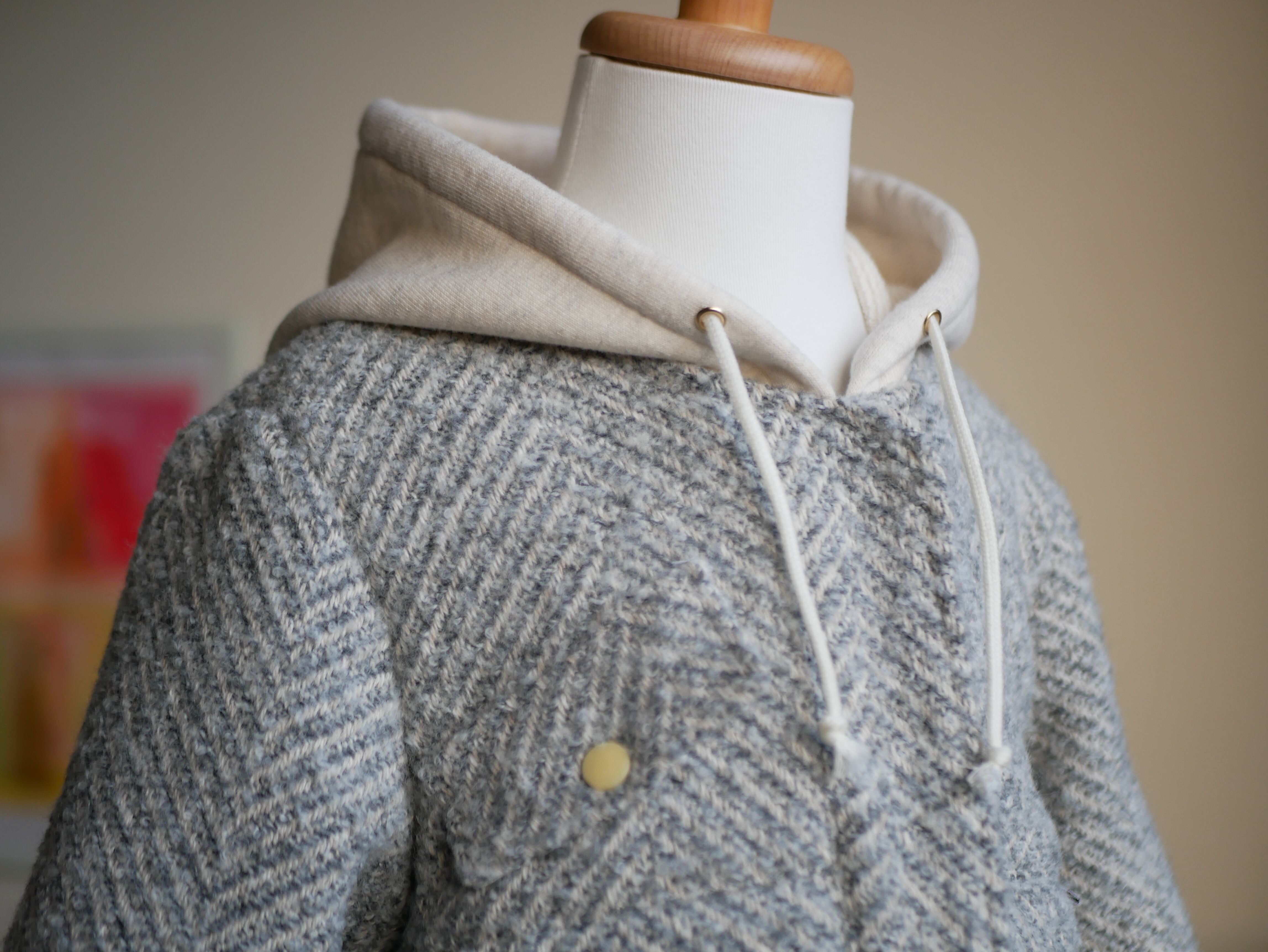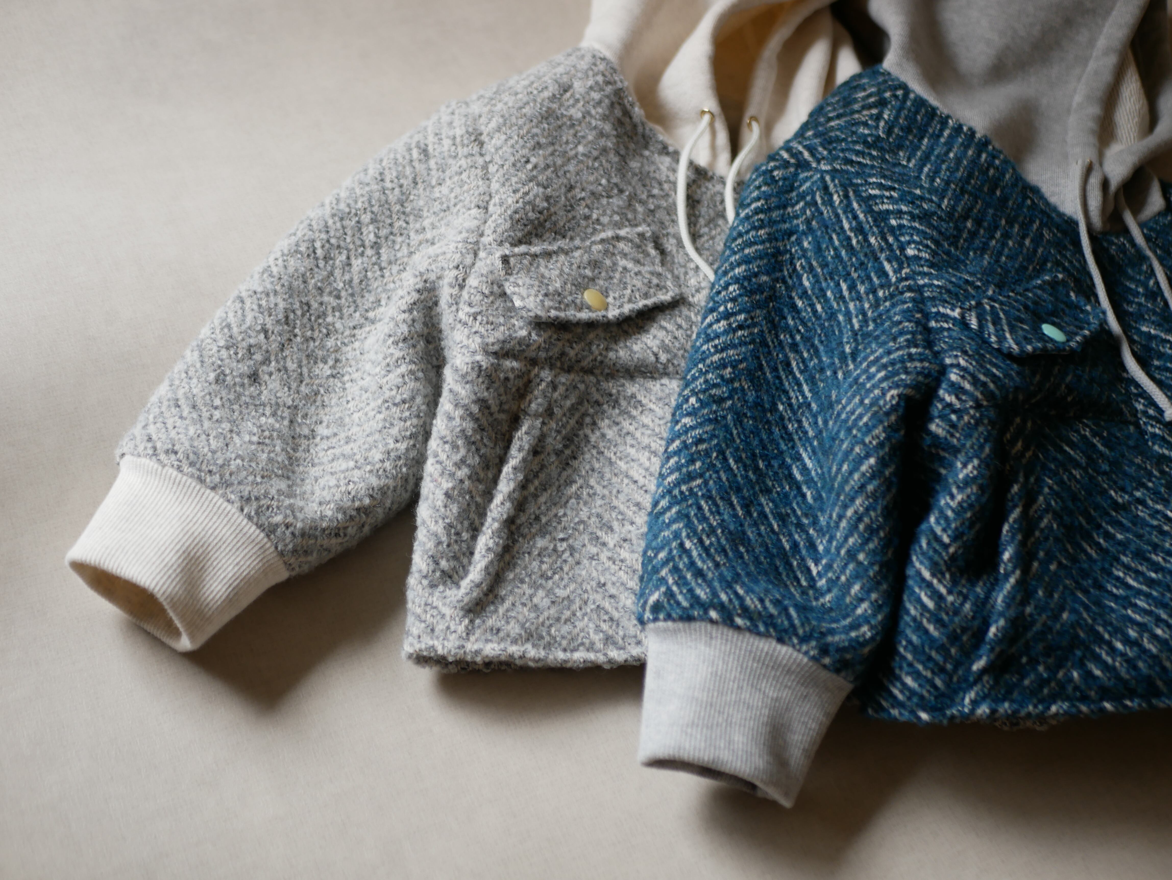 イタリア産のヘリンボーンツイードに、裏毛を切り替えた秋冬にぴったりのジャケットです。