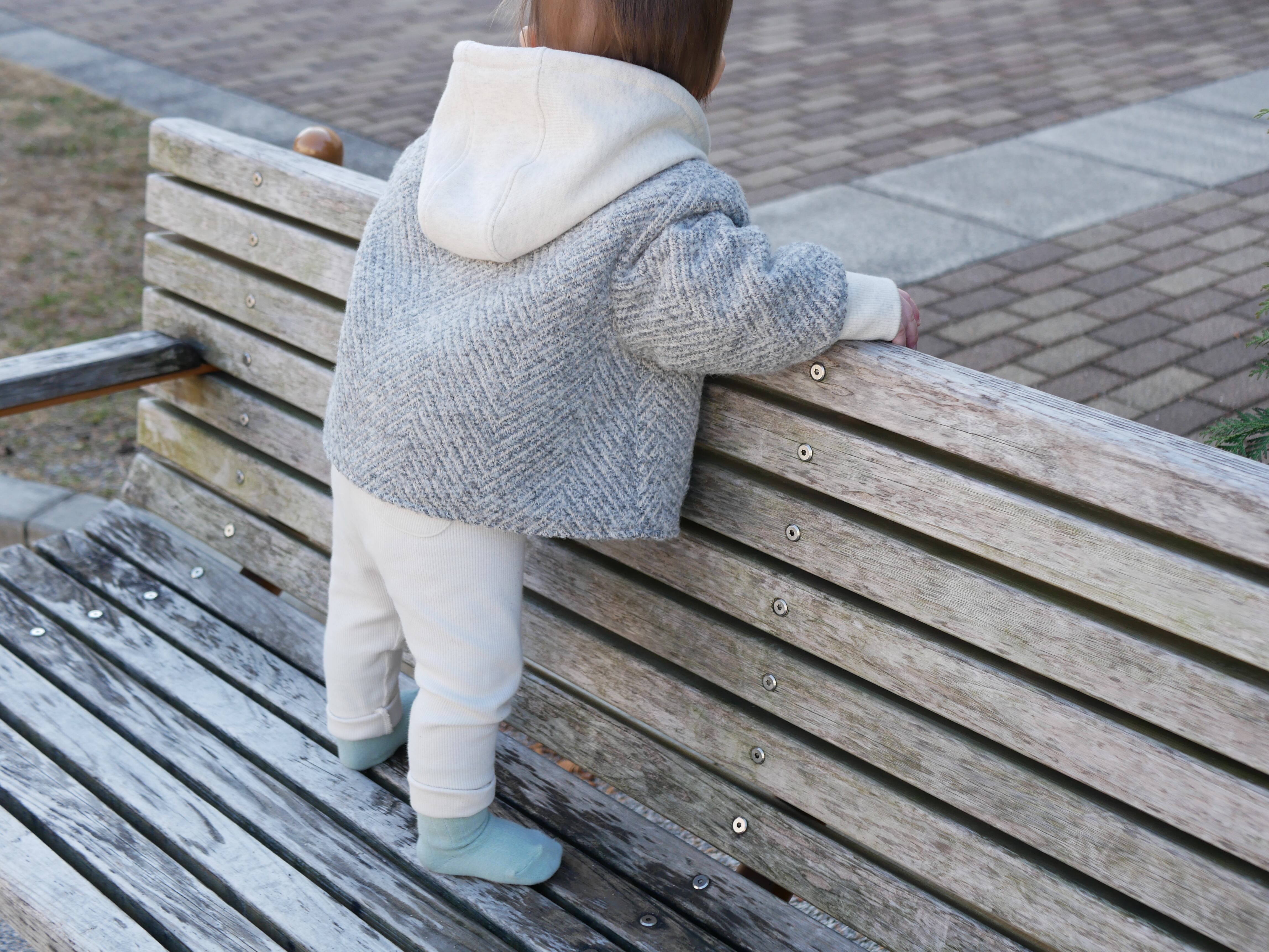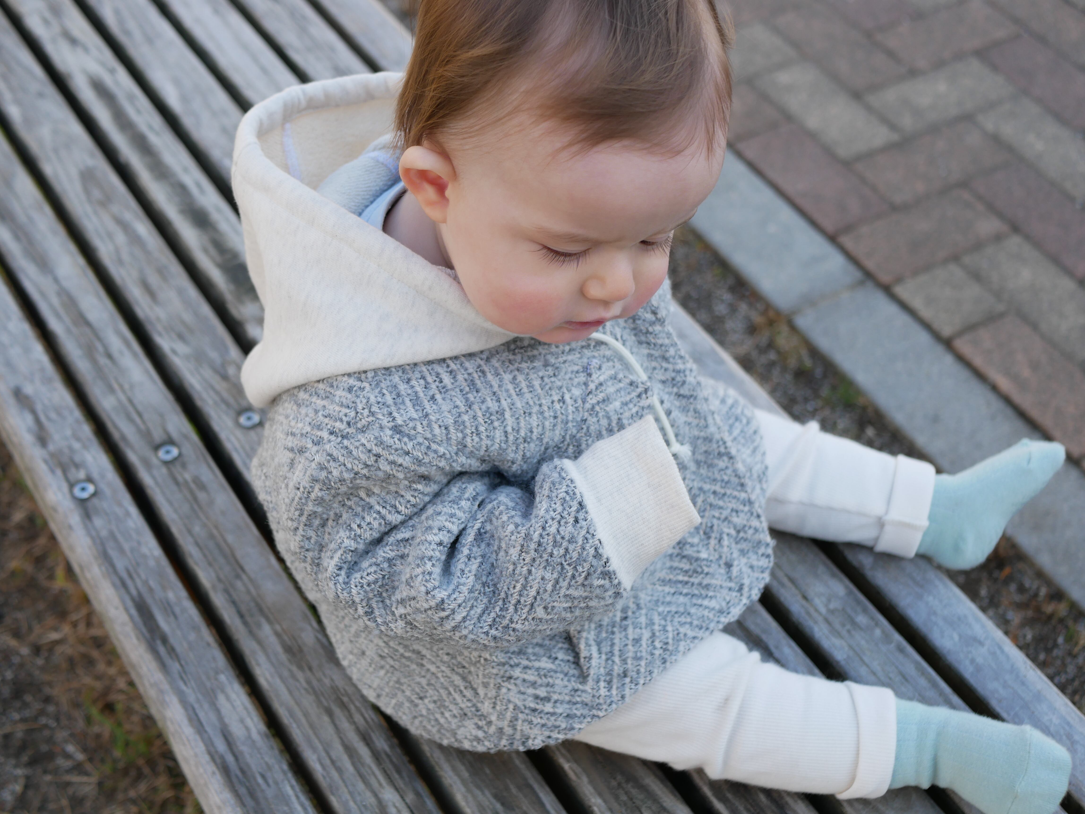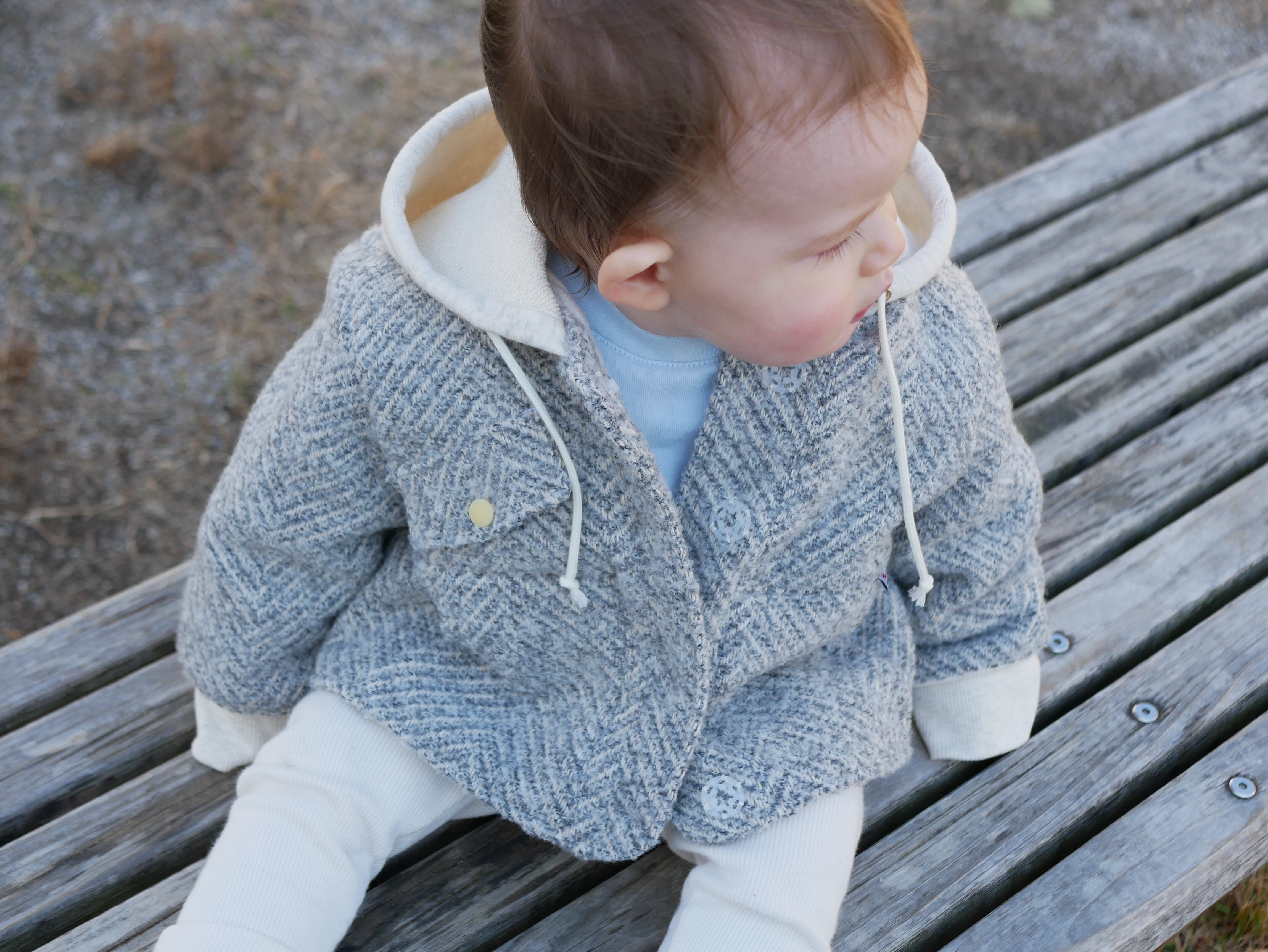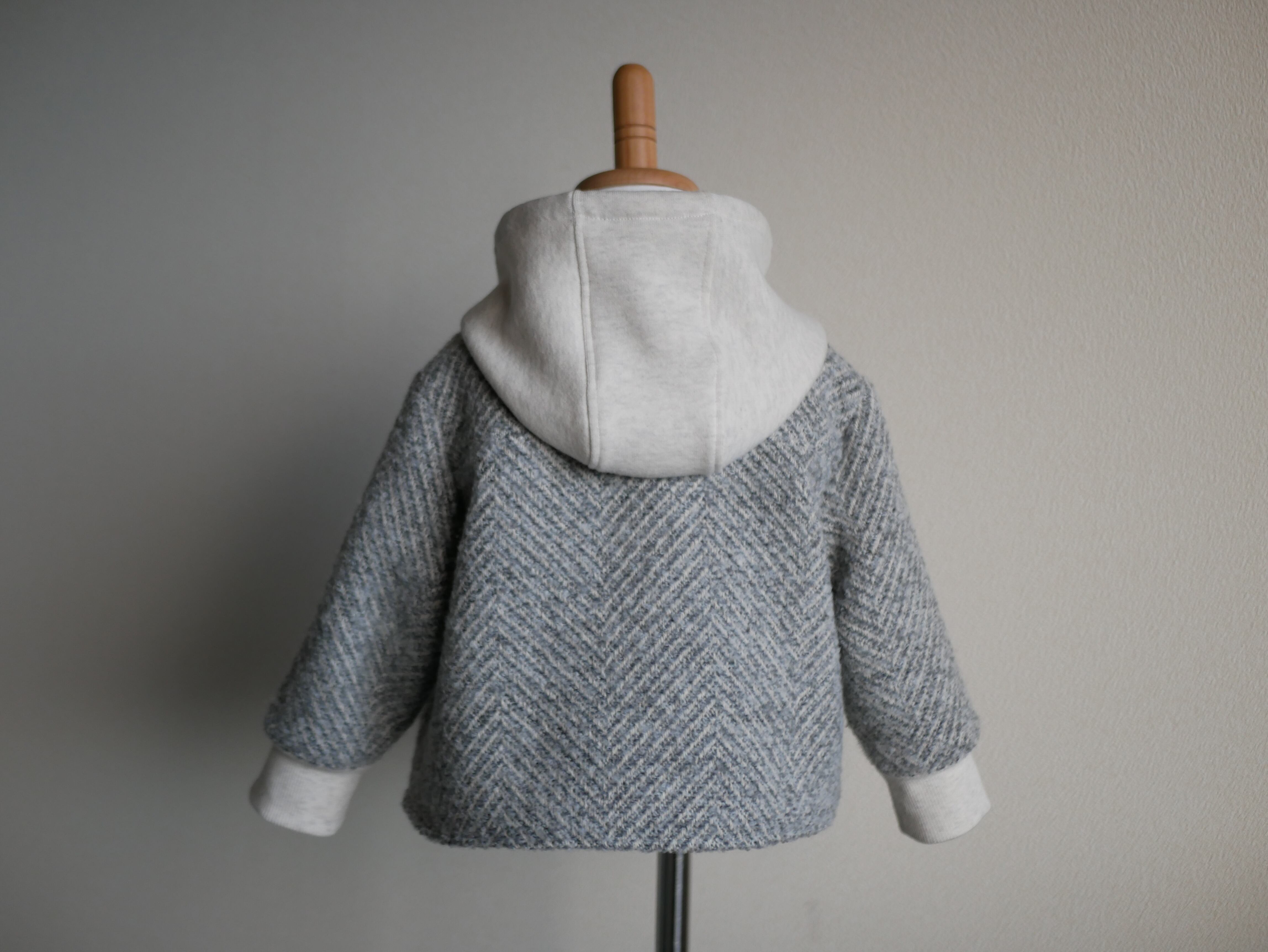 イタリア産のヘリンボーンツイードに、裏毛を切り替えた秋冬にぴったりのジャケットです。