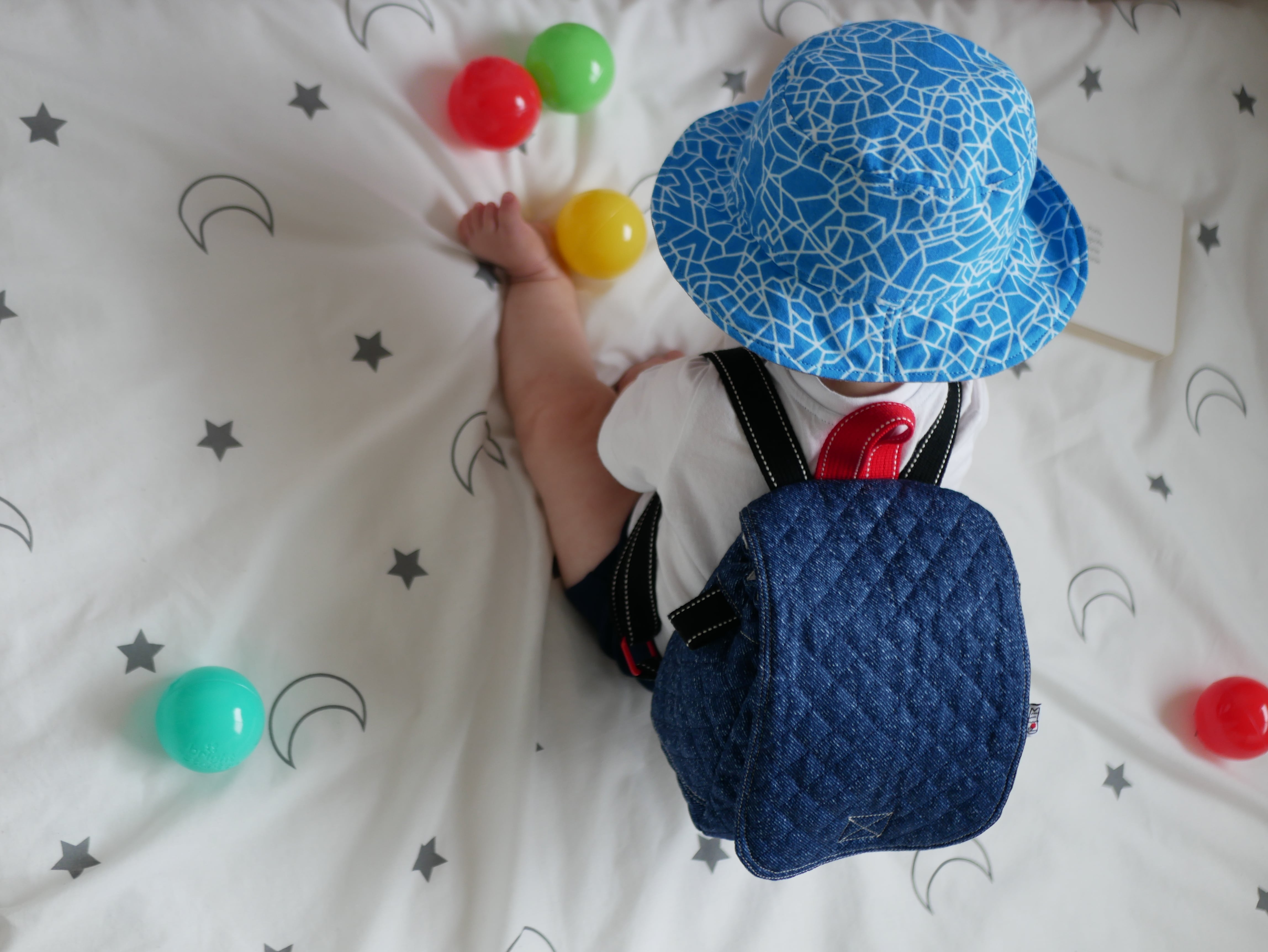 Yochiyochi is the Japanese word for "toddle"! A teeny tiny rucksack for a teeny tiny toddler. Make them carry their own nappies! Unfortuneately we didn't have a toddler to hand so we used a our baby as a model, but this rucksack suits any toddler who wants to carry a couple of treasures around.