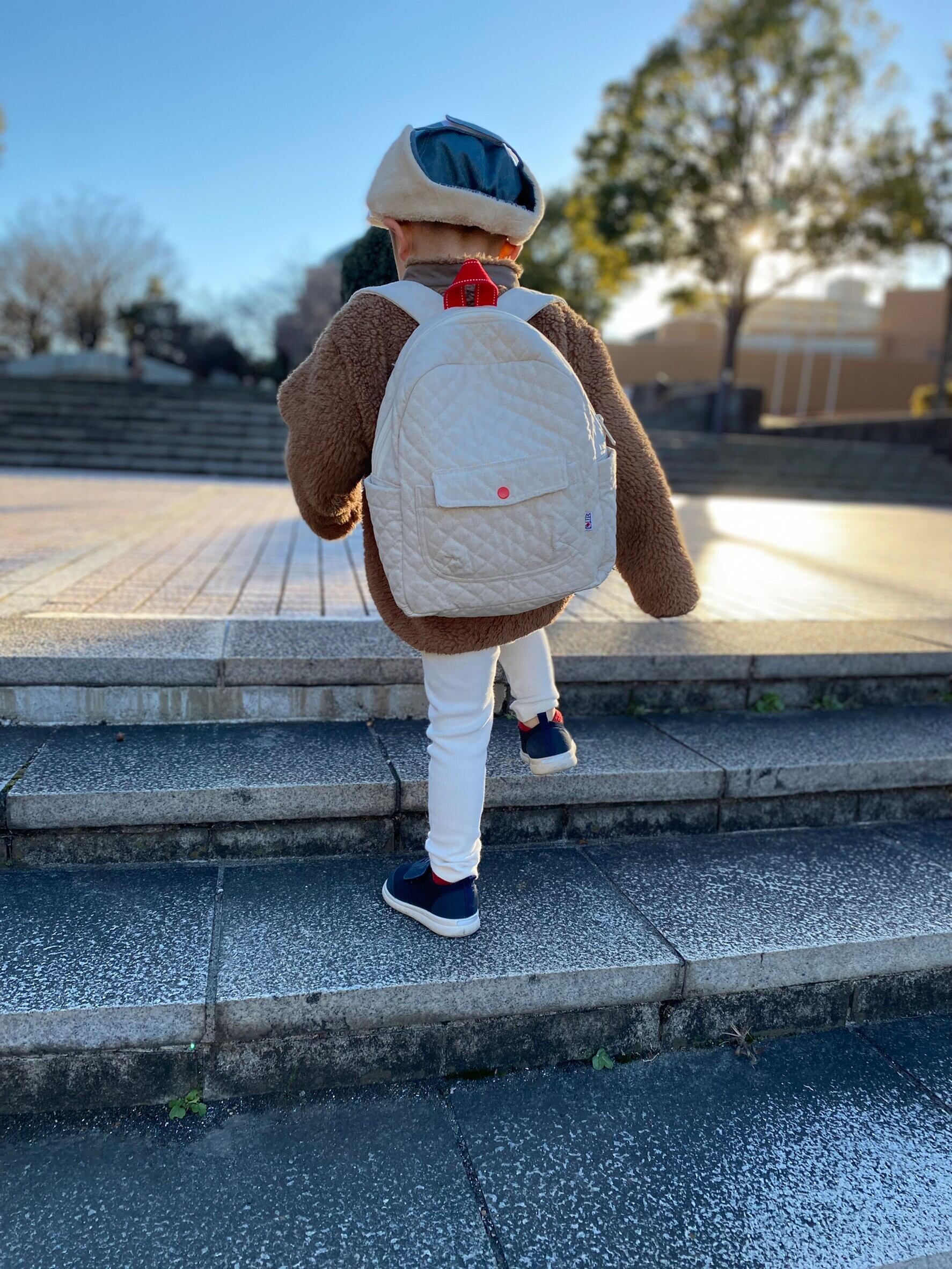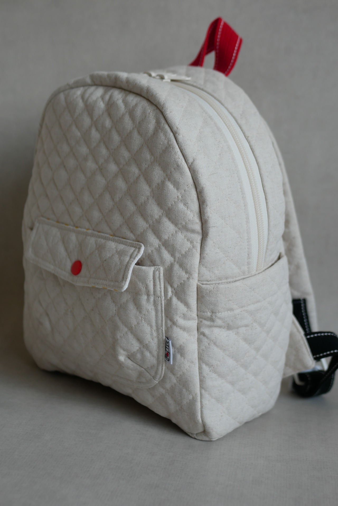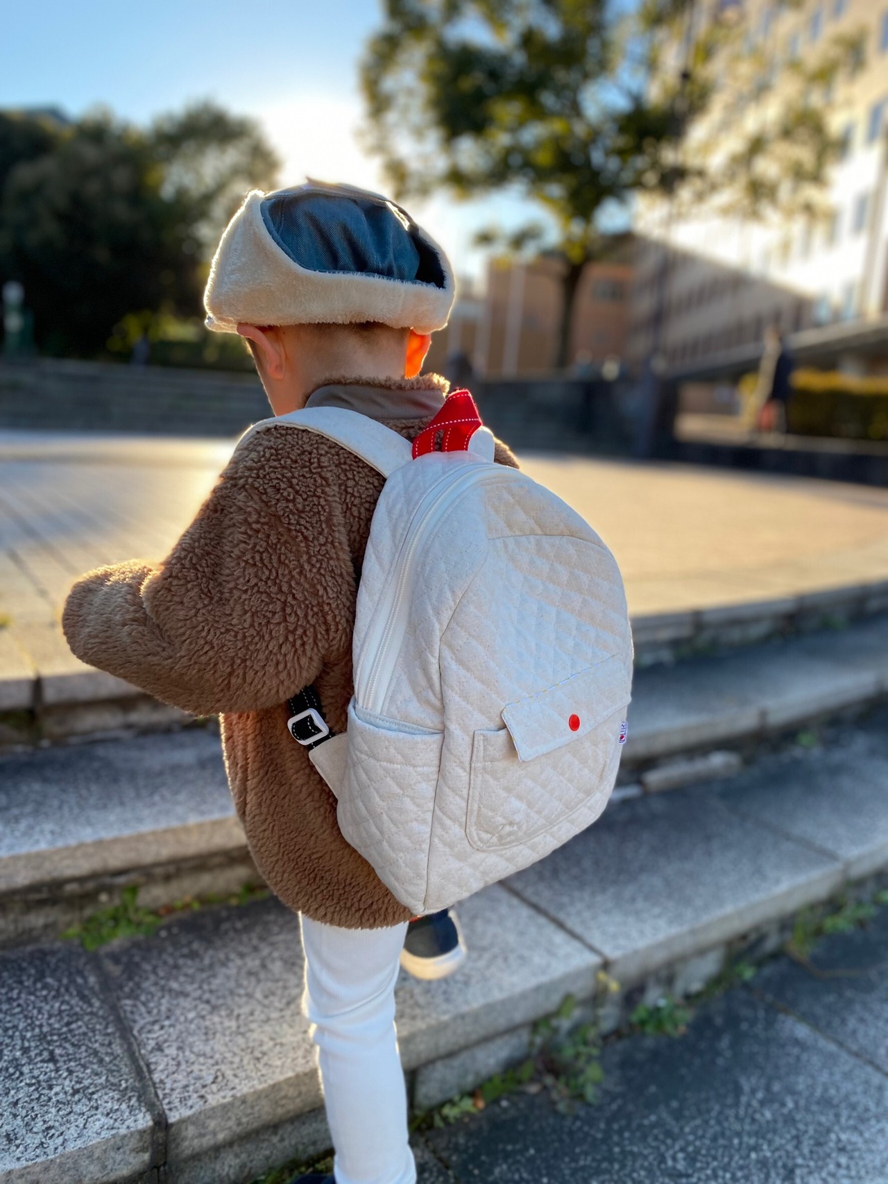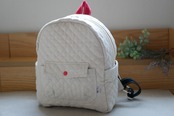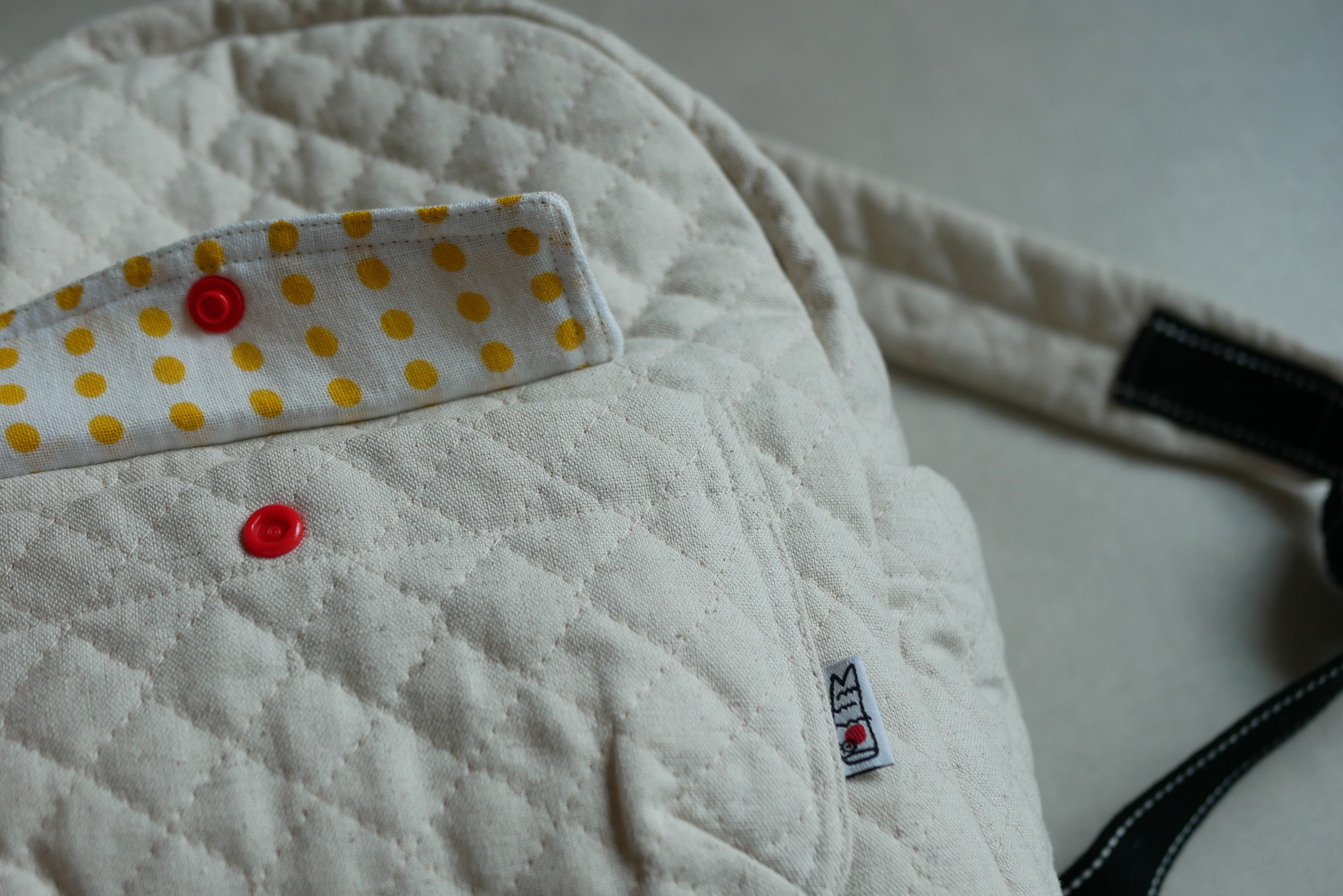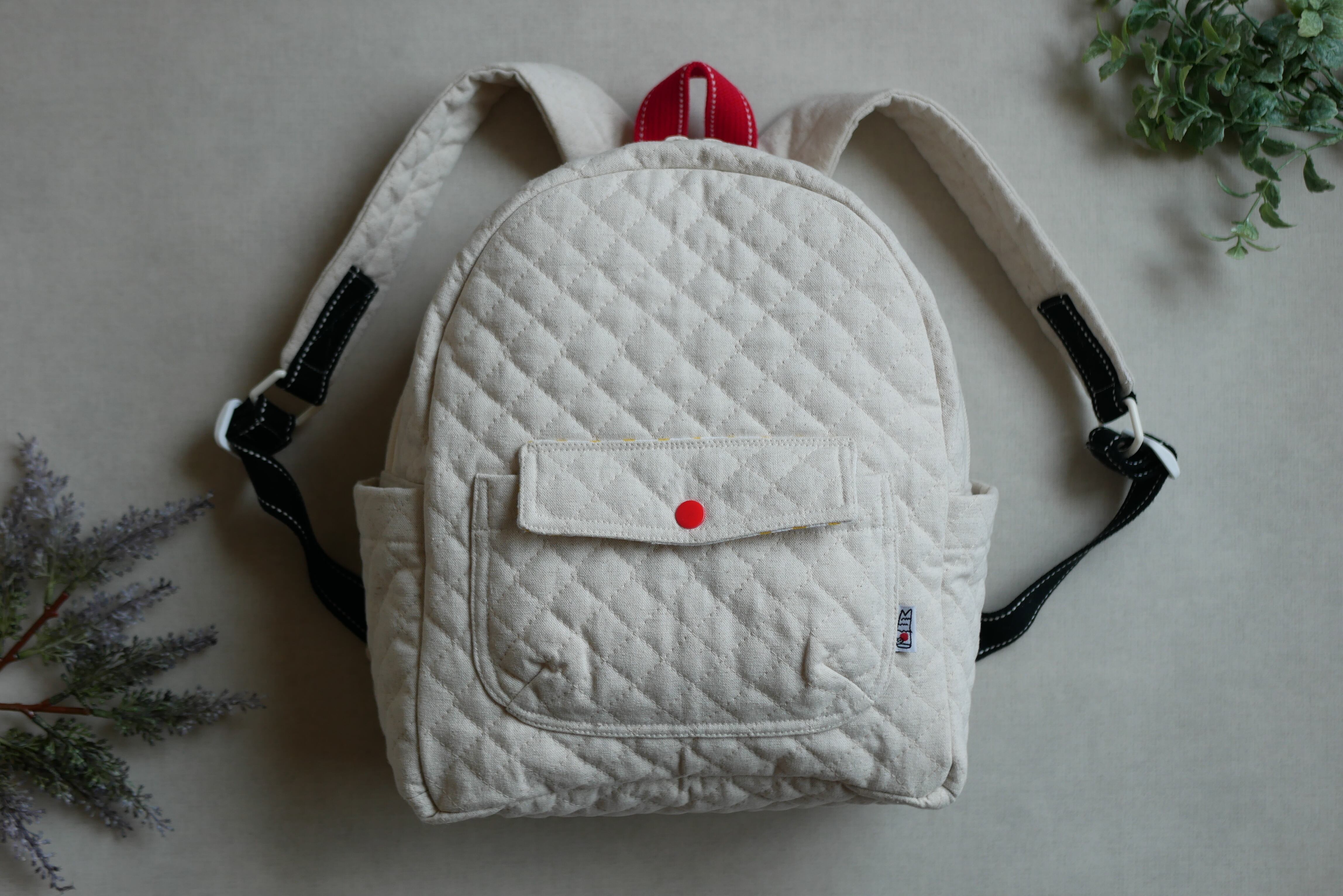 A quilted toddler's rucksack with adjustable straps and a polkadot inner lining. You can choose your preferred colour for the inner lining of the rucksack. This rucksack is made using mameshibori tenugui.