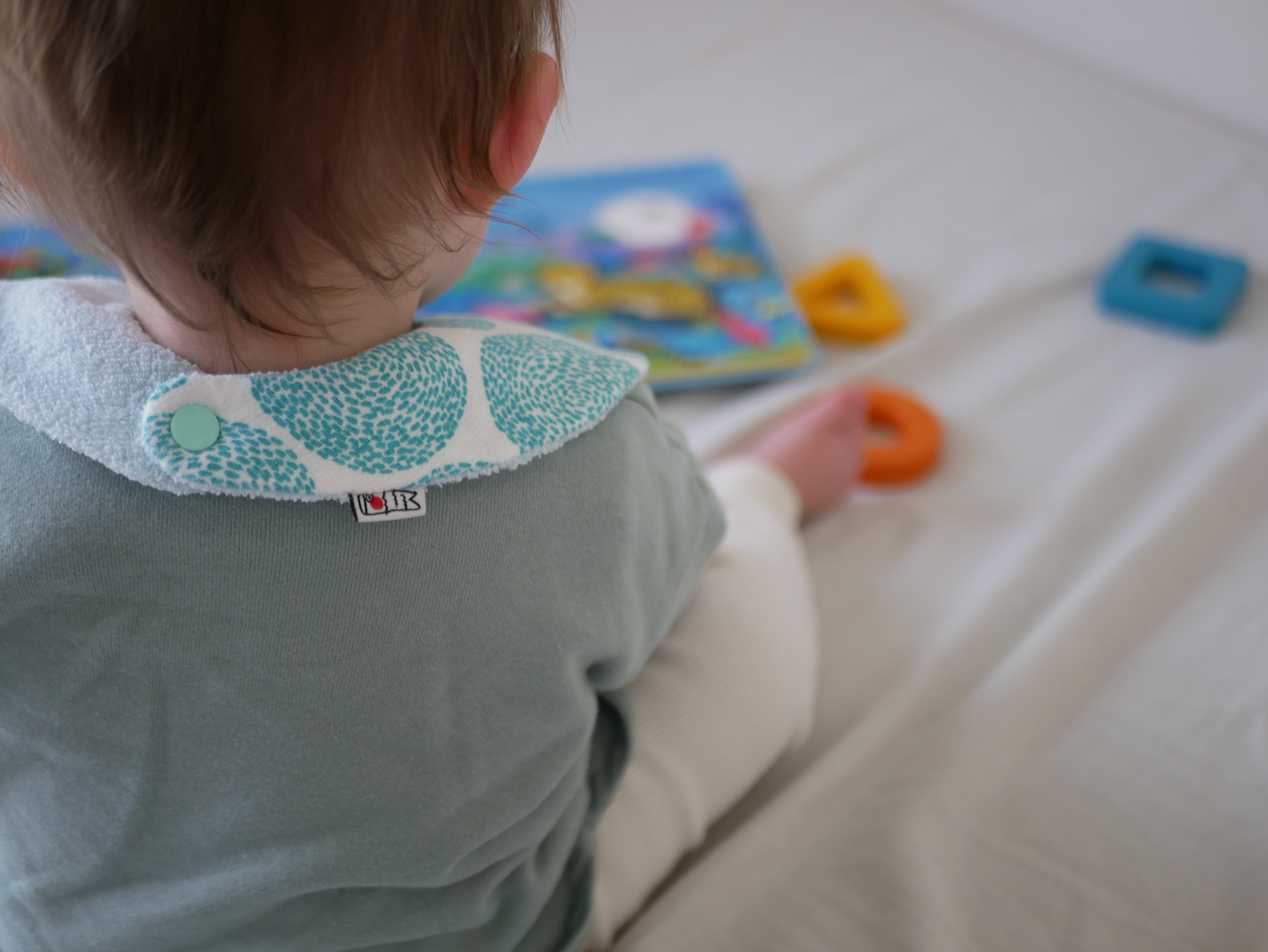Since more toweling material is sandwiched between the front and back, it is resistant to washing and is perfect for babies who drool a lot!