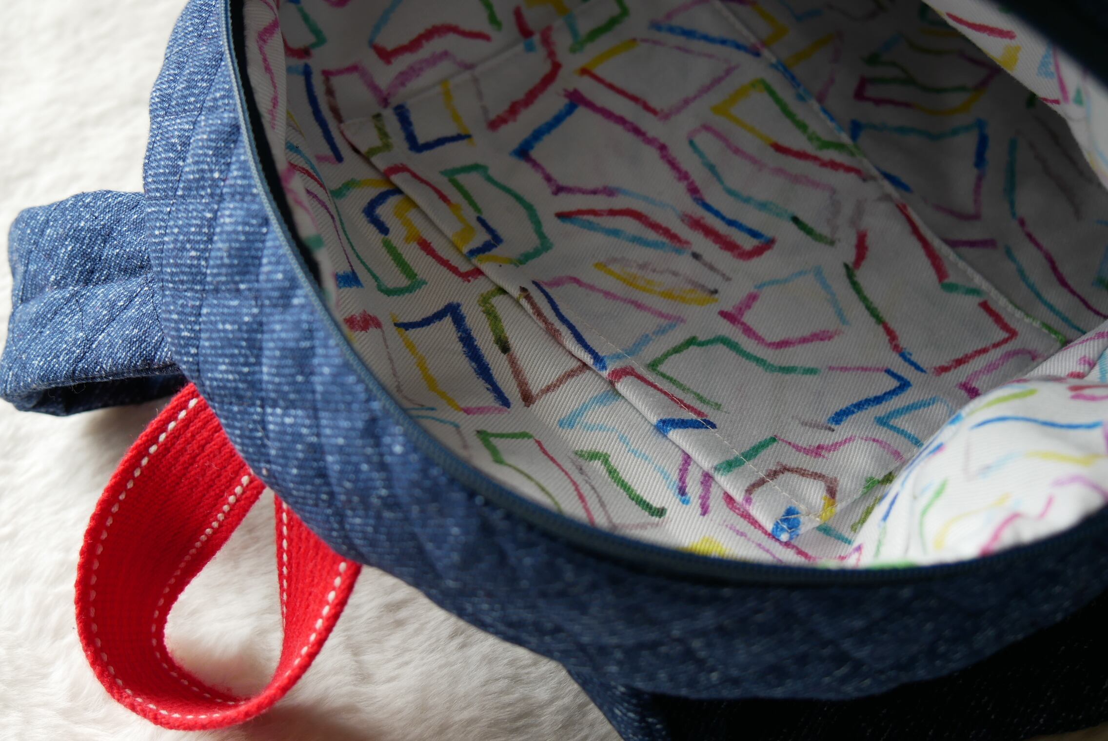 デニム風のオックス生地を使用したキルティング・リュックサックです。