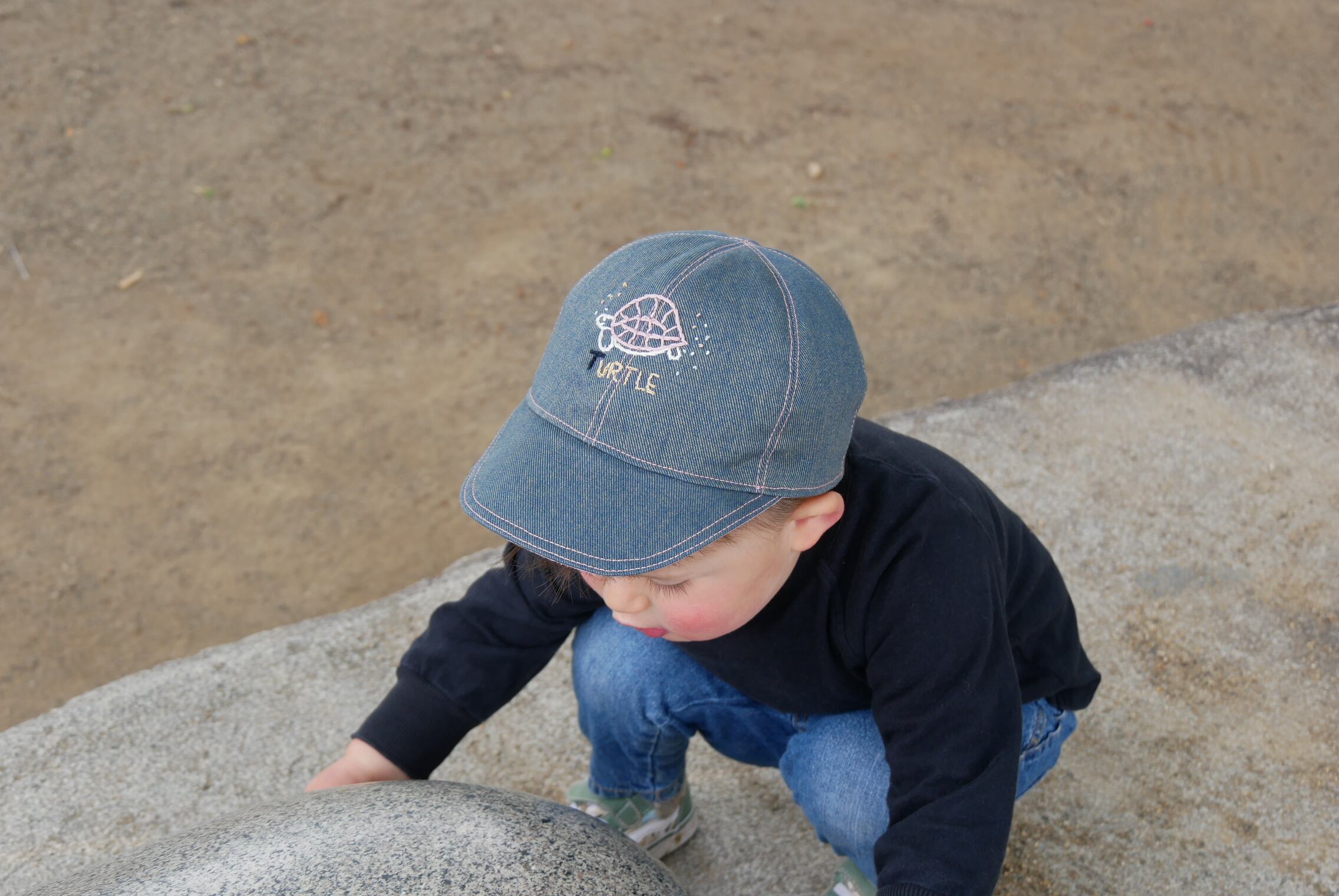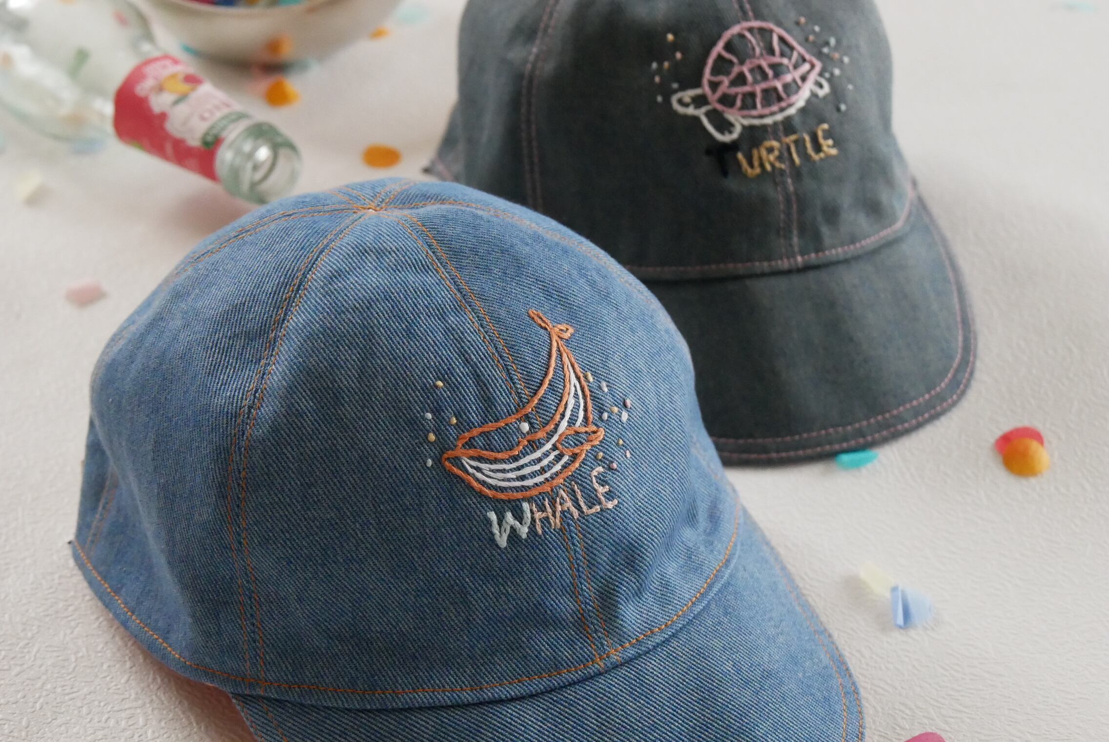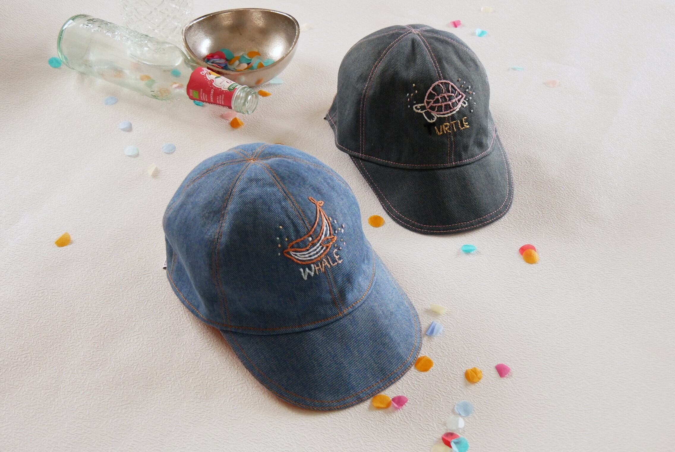 オールドデニム風のツイル生地で作った刺繍入りキャップです。