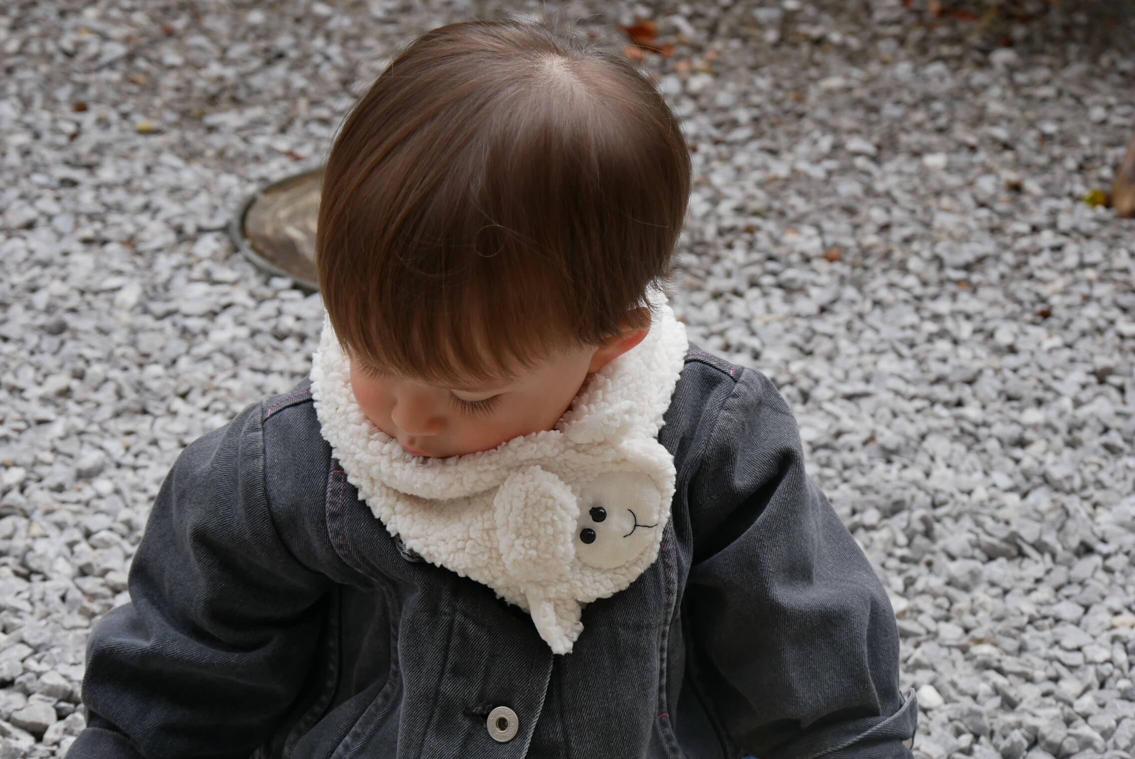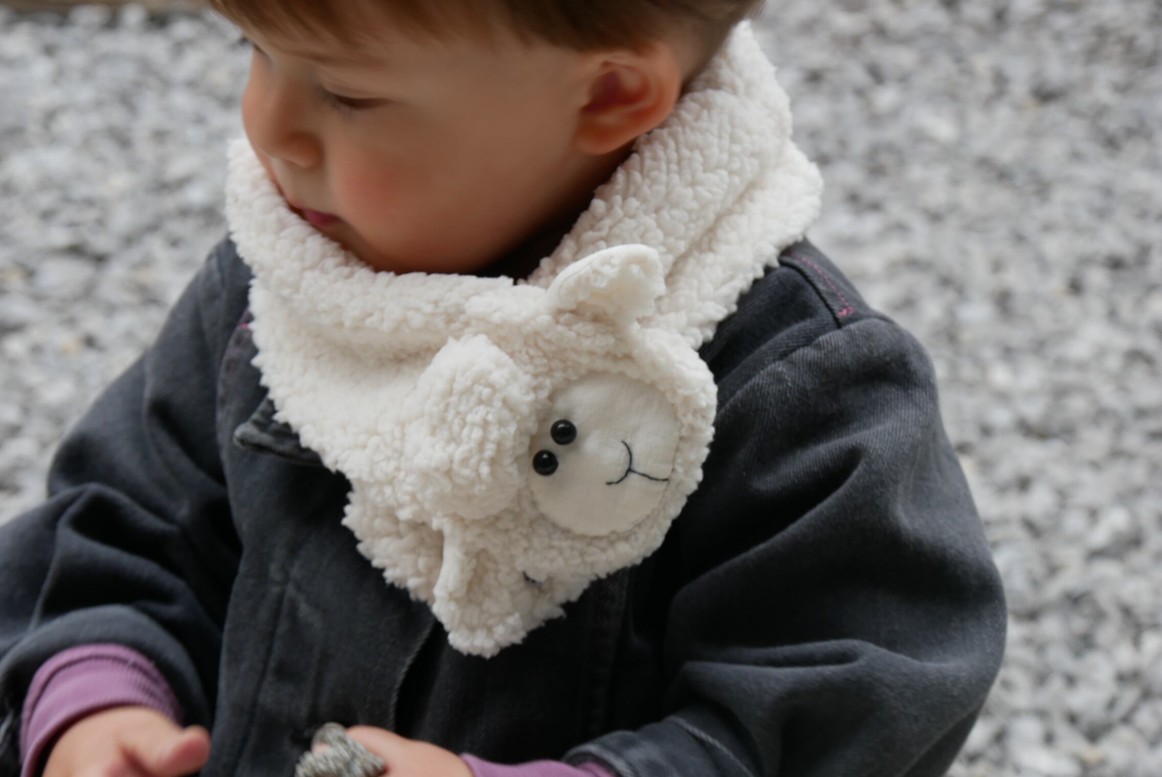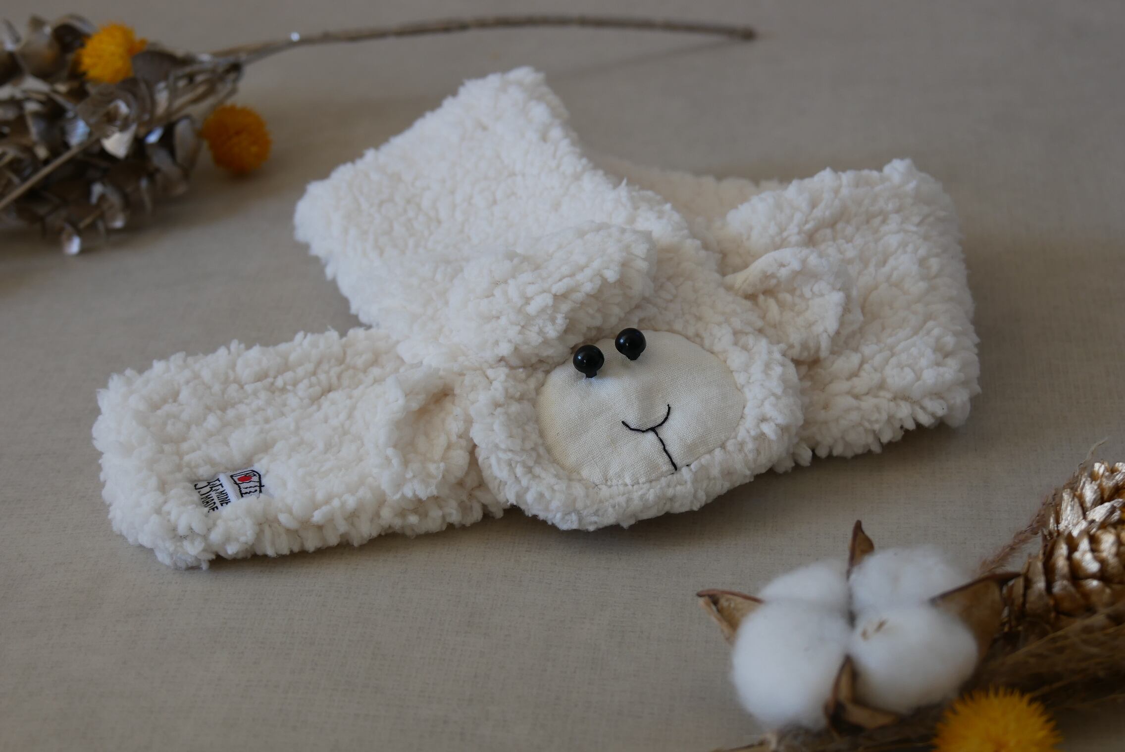 肌触りの良いもこもこのシープボアを使用したひつじさんマフラーです。