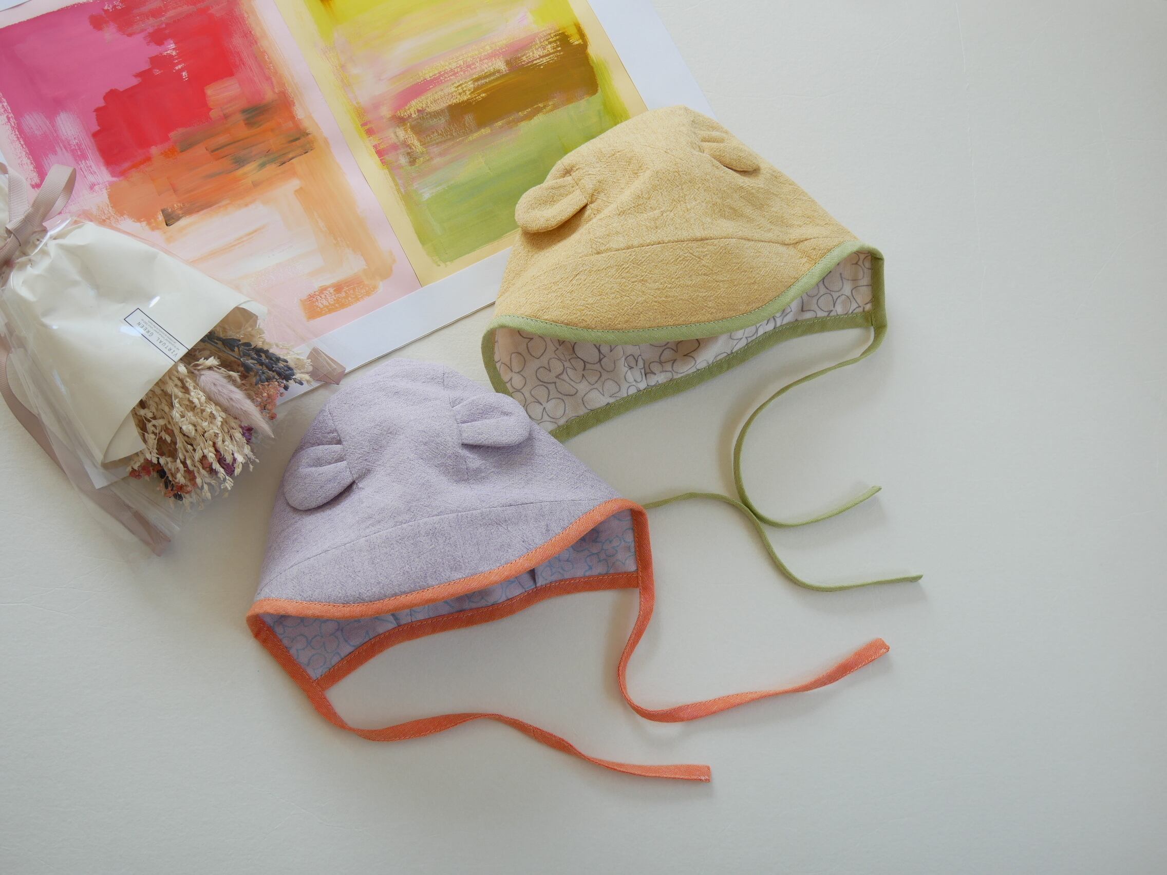 裏地は、可愛らしいクローバー柄のダブルガーゼを使用しており、優しい風合いです。