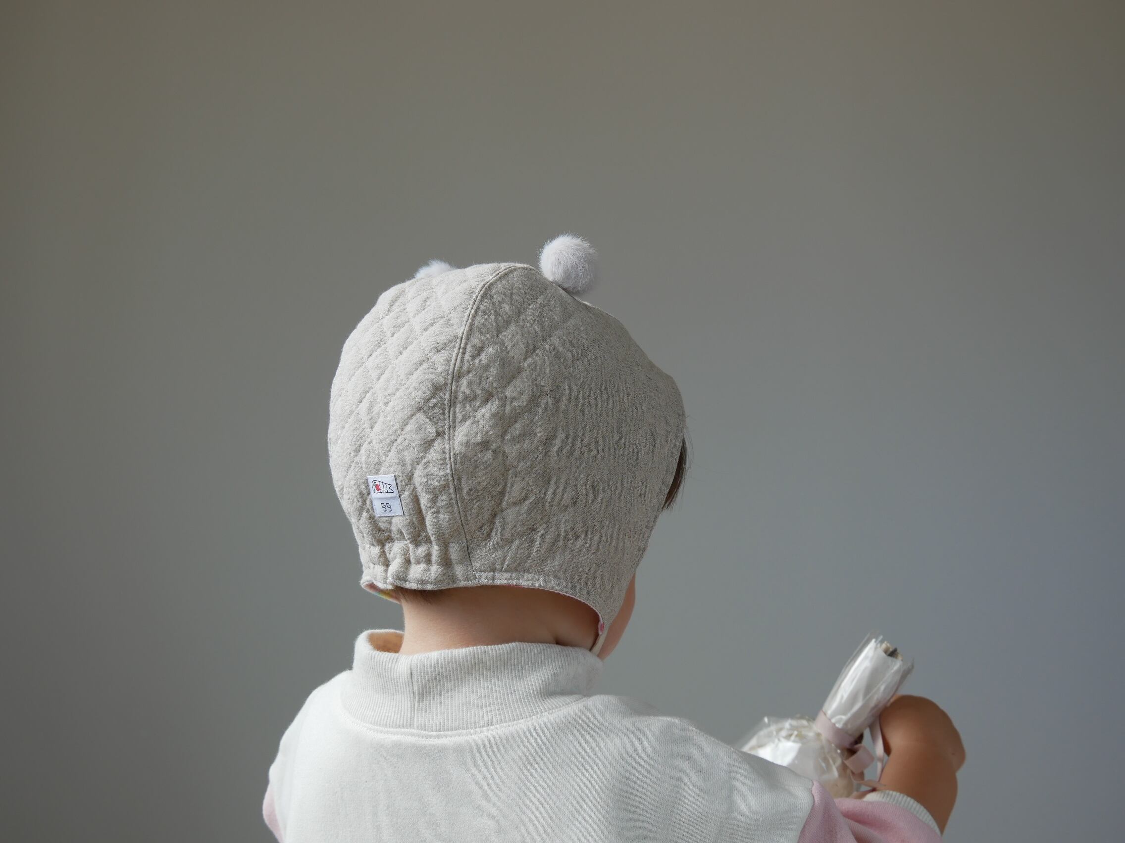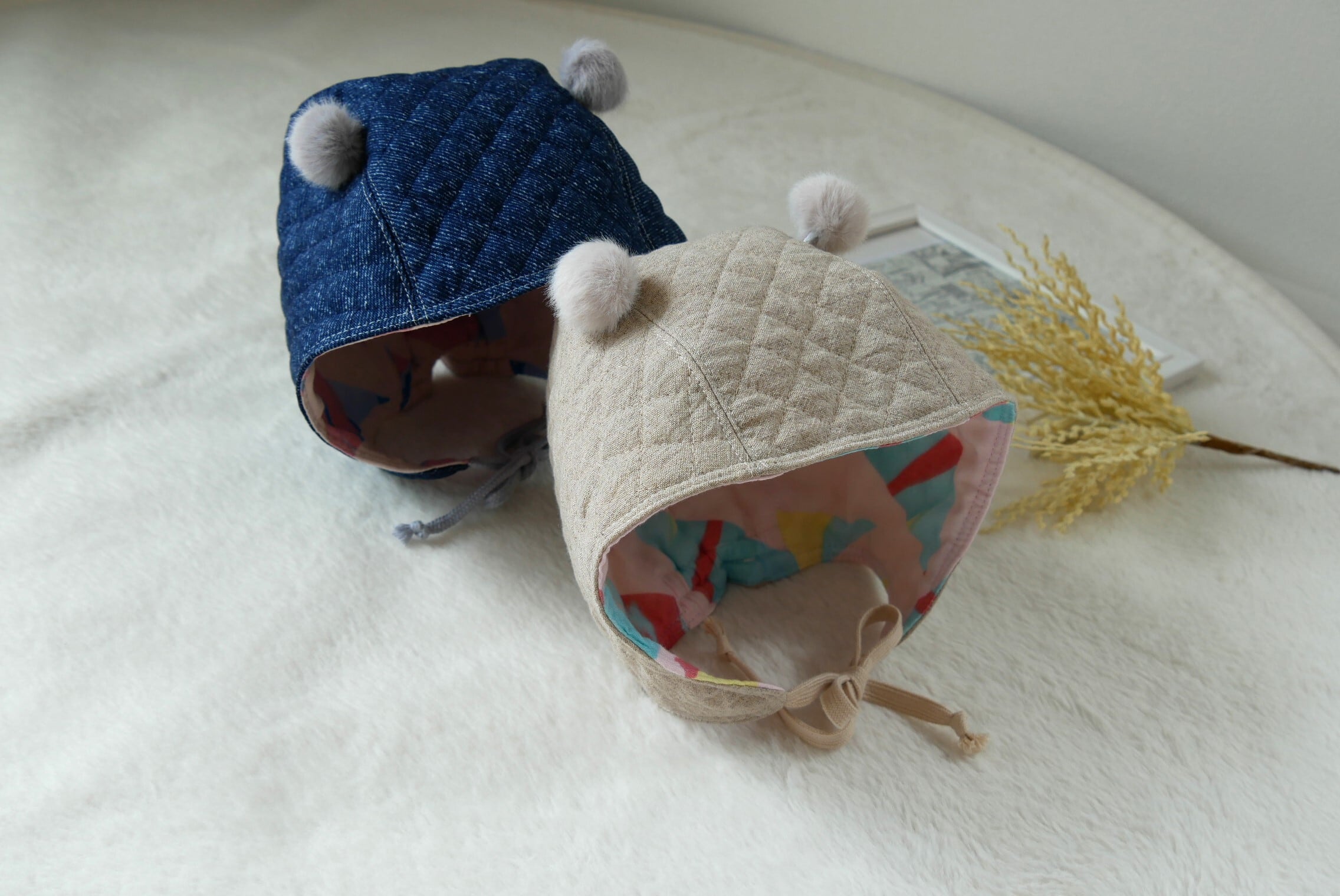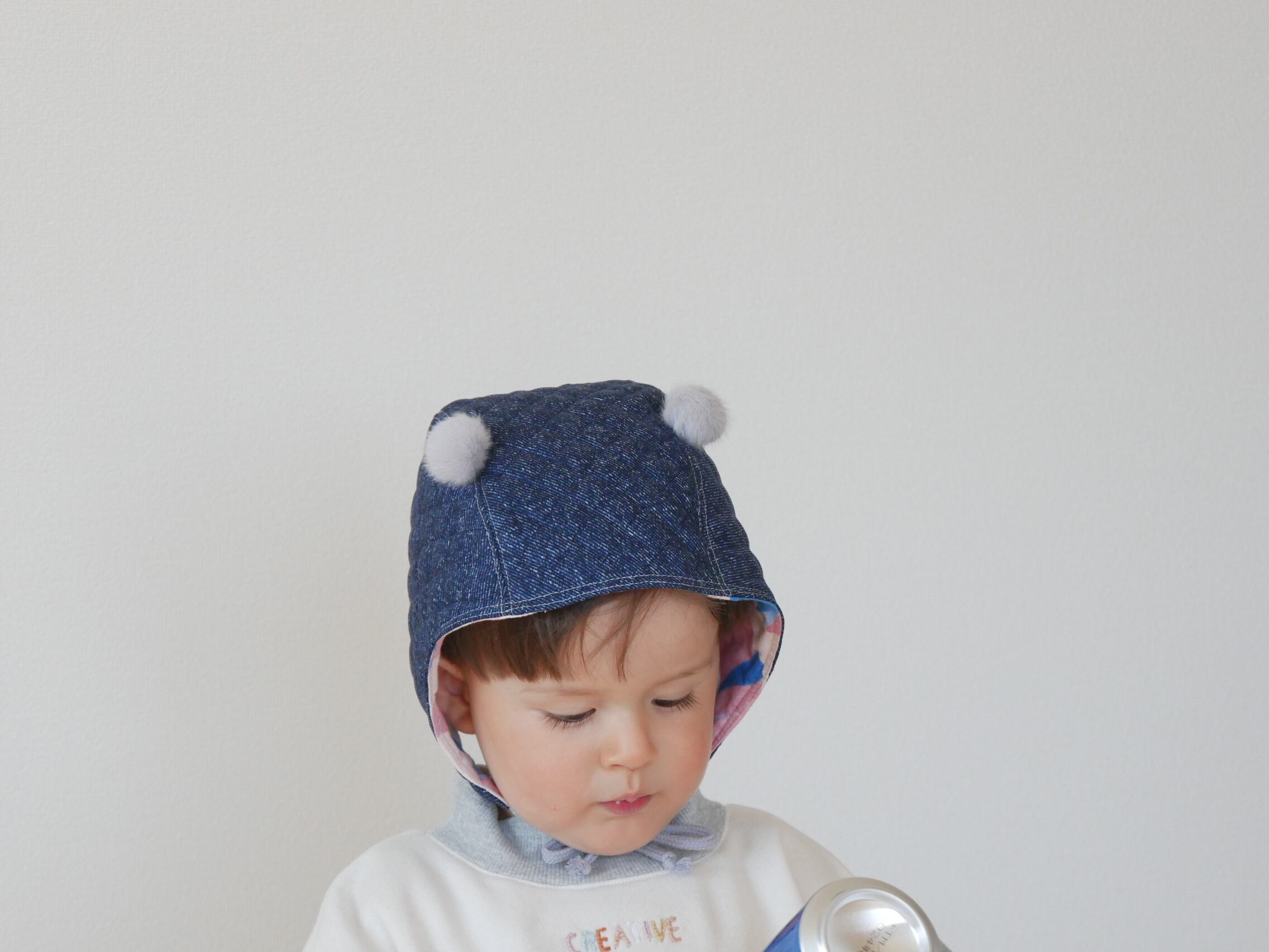 裏地にダブルガーゼを使用したくま耳キルト帽子です。