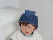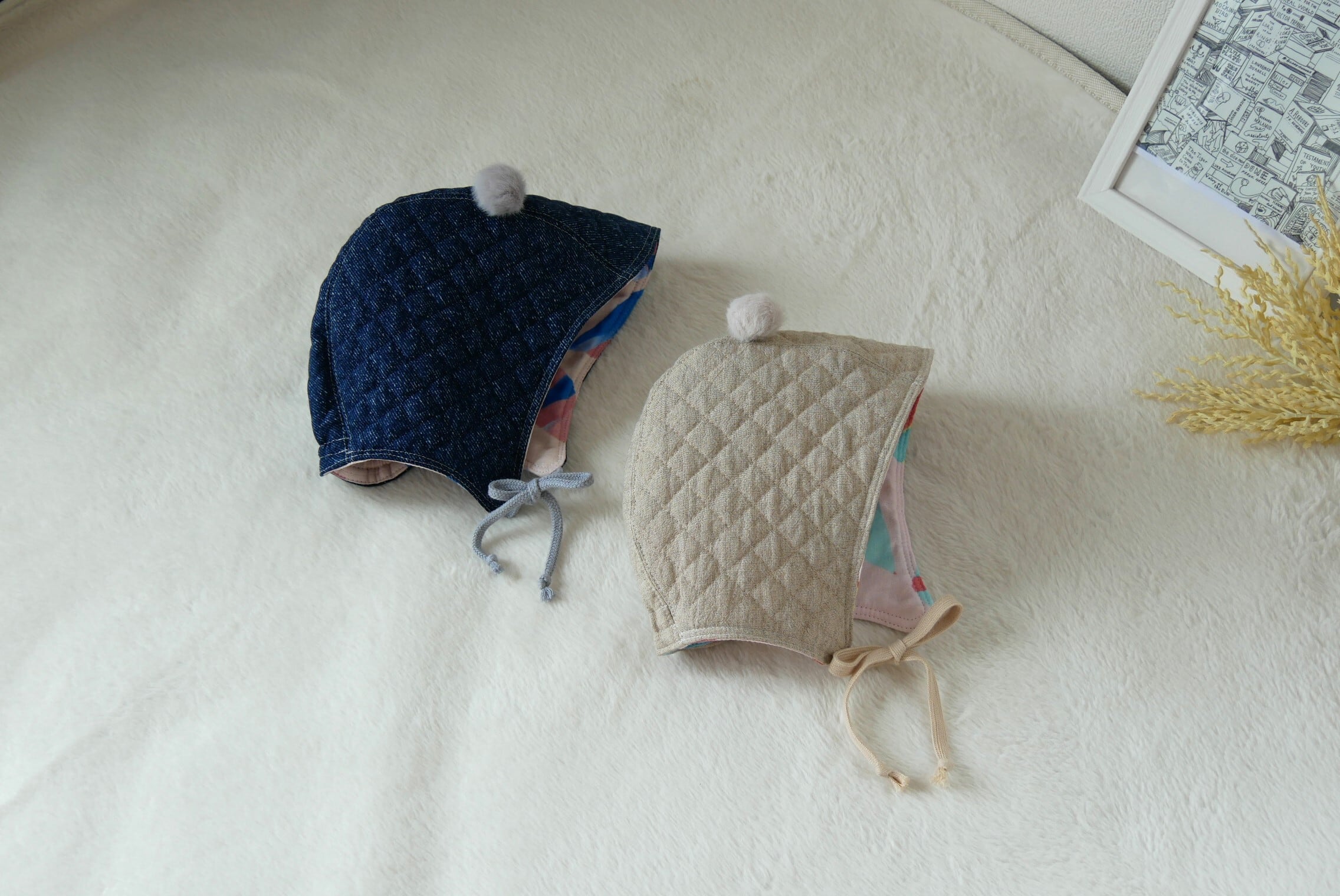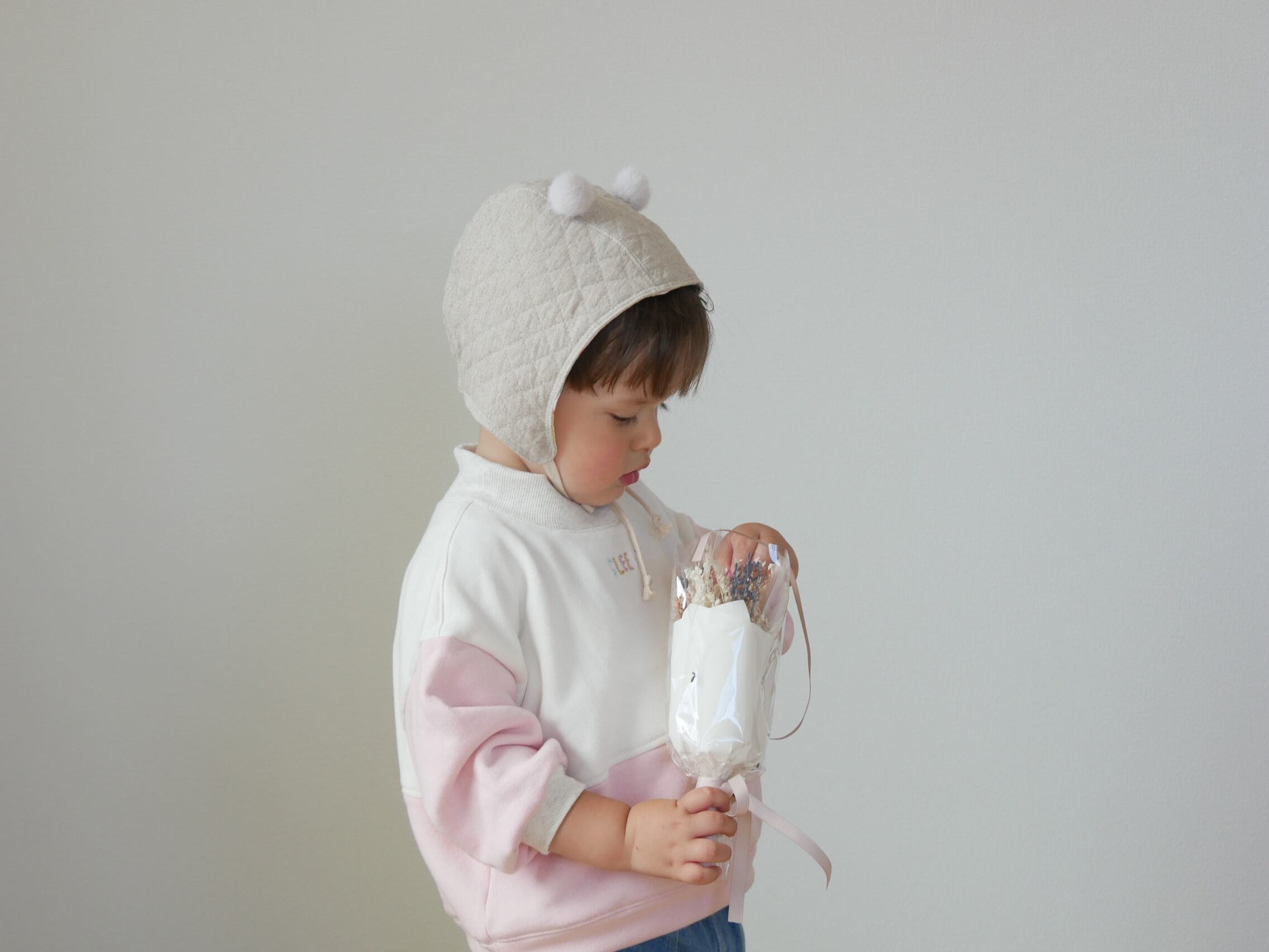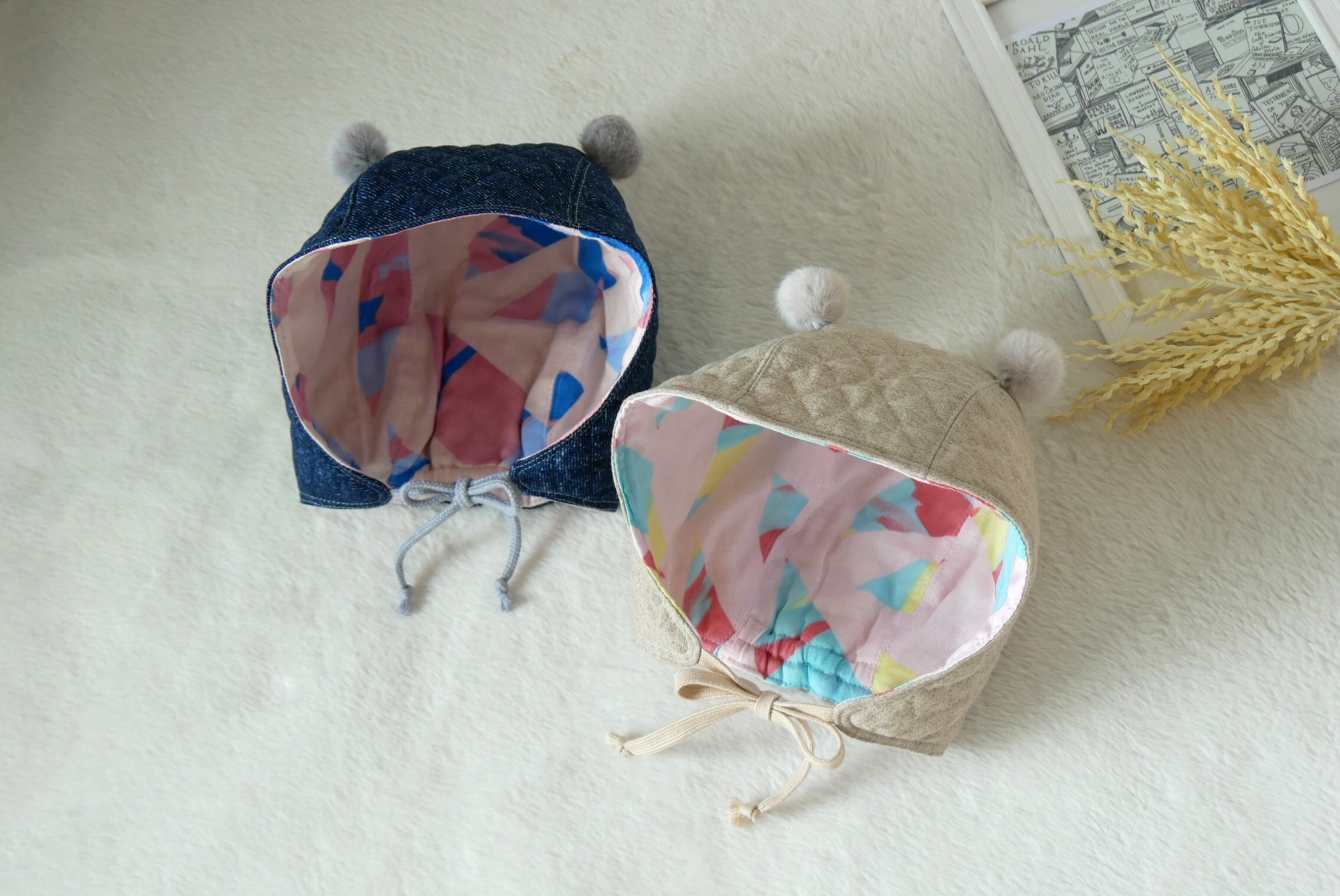 裏地にダブルガーゼを使用したくま耳キルト帽子です。