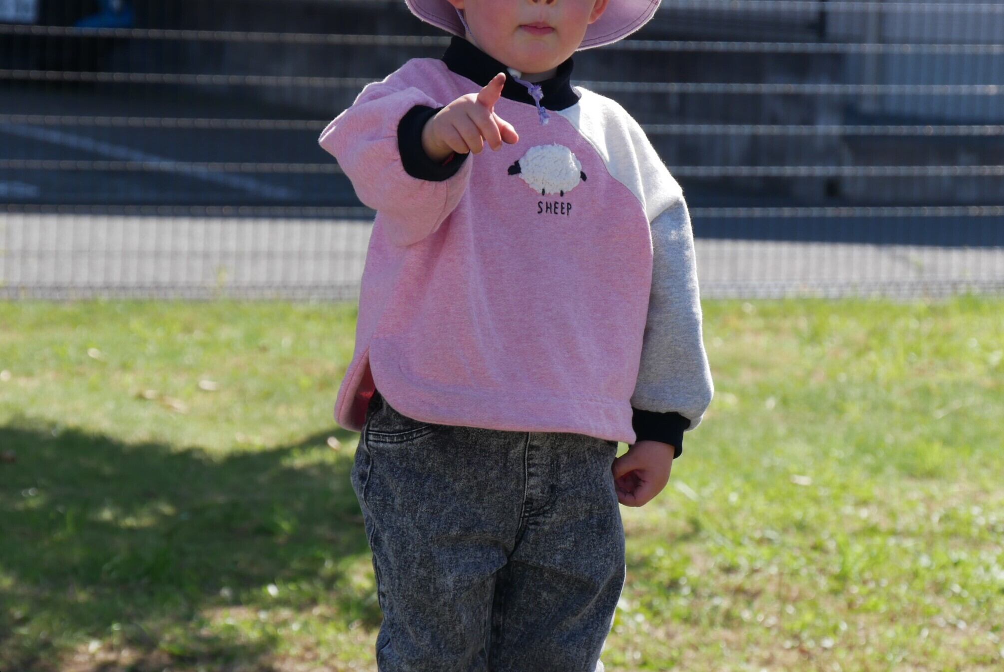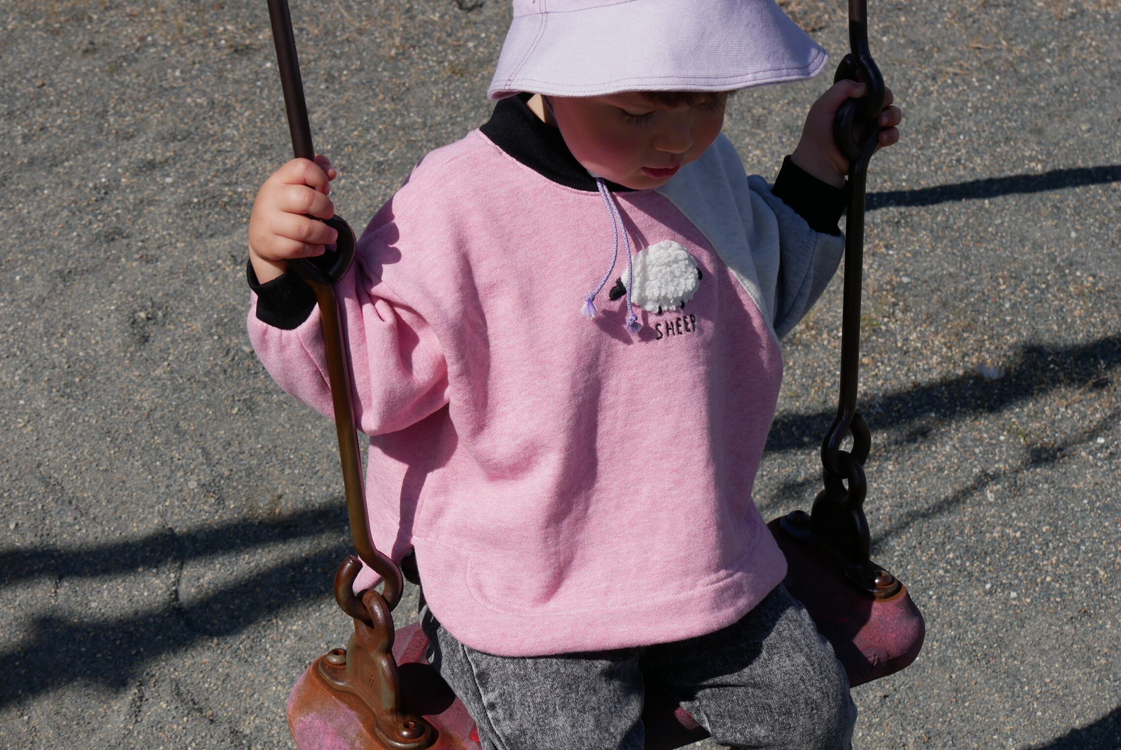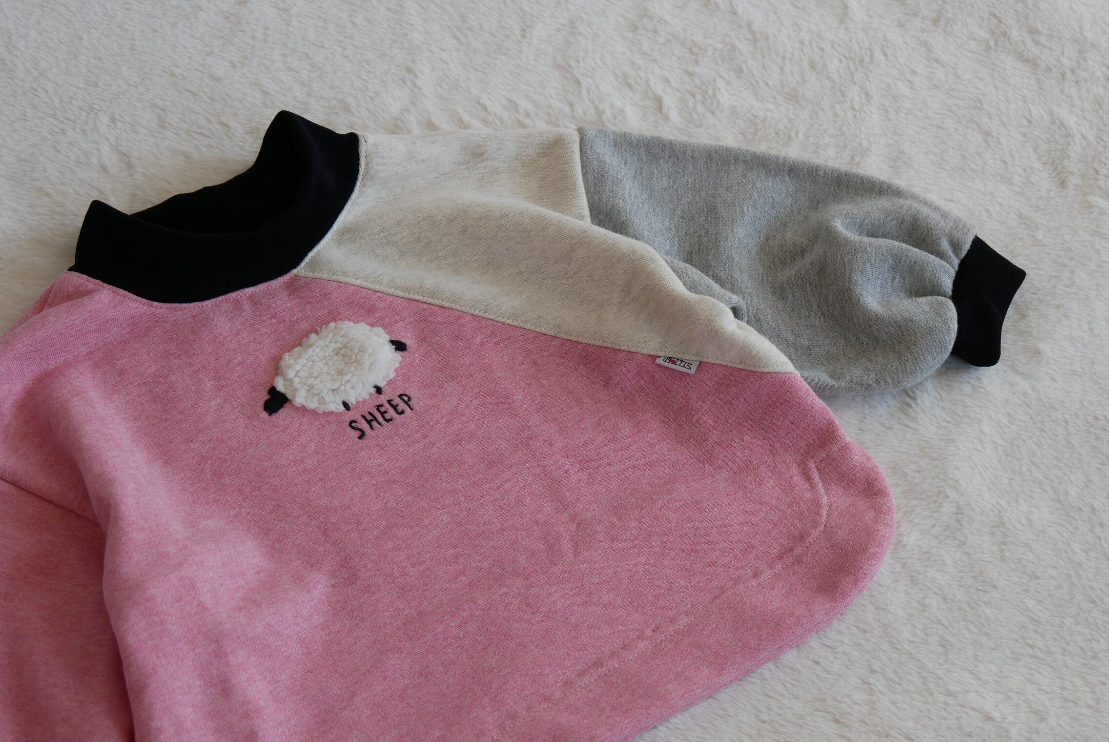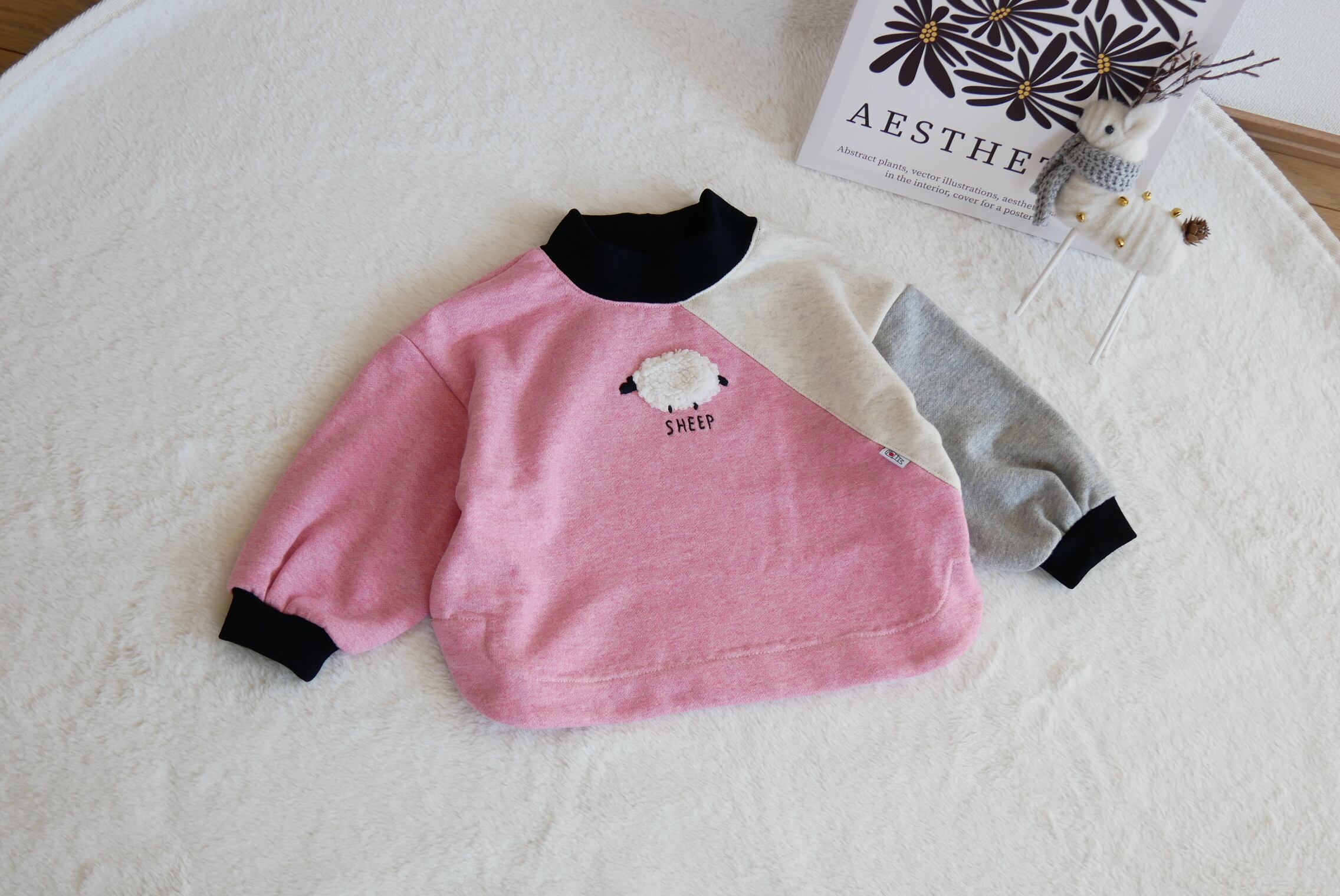 胸元には、モコモコのひつじさんを手刺繍しました。