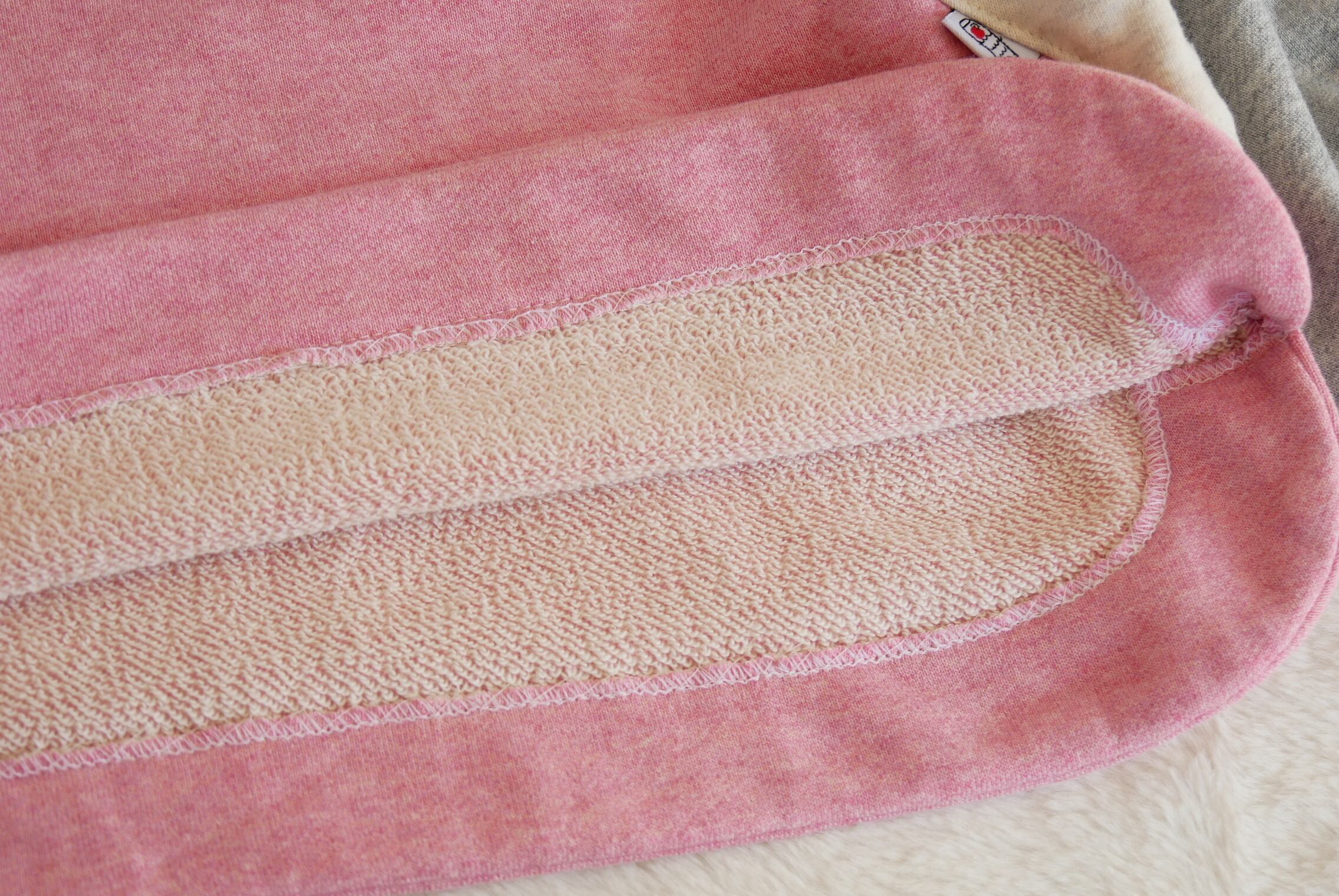 やや厚手で膨らみがあり、毛玉になりにくくお洗濯にも強い、クオリティの高い素材です。