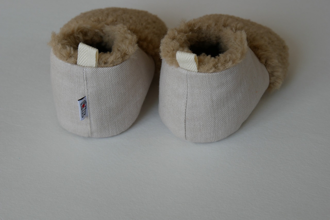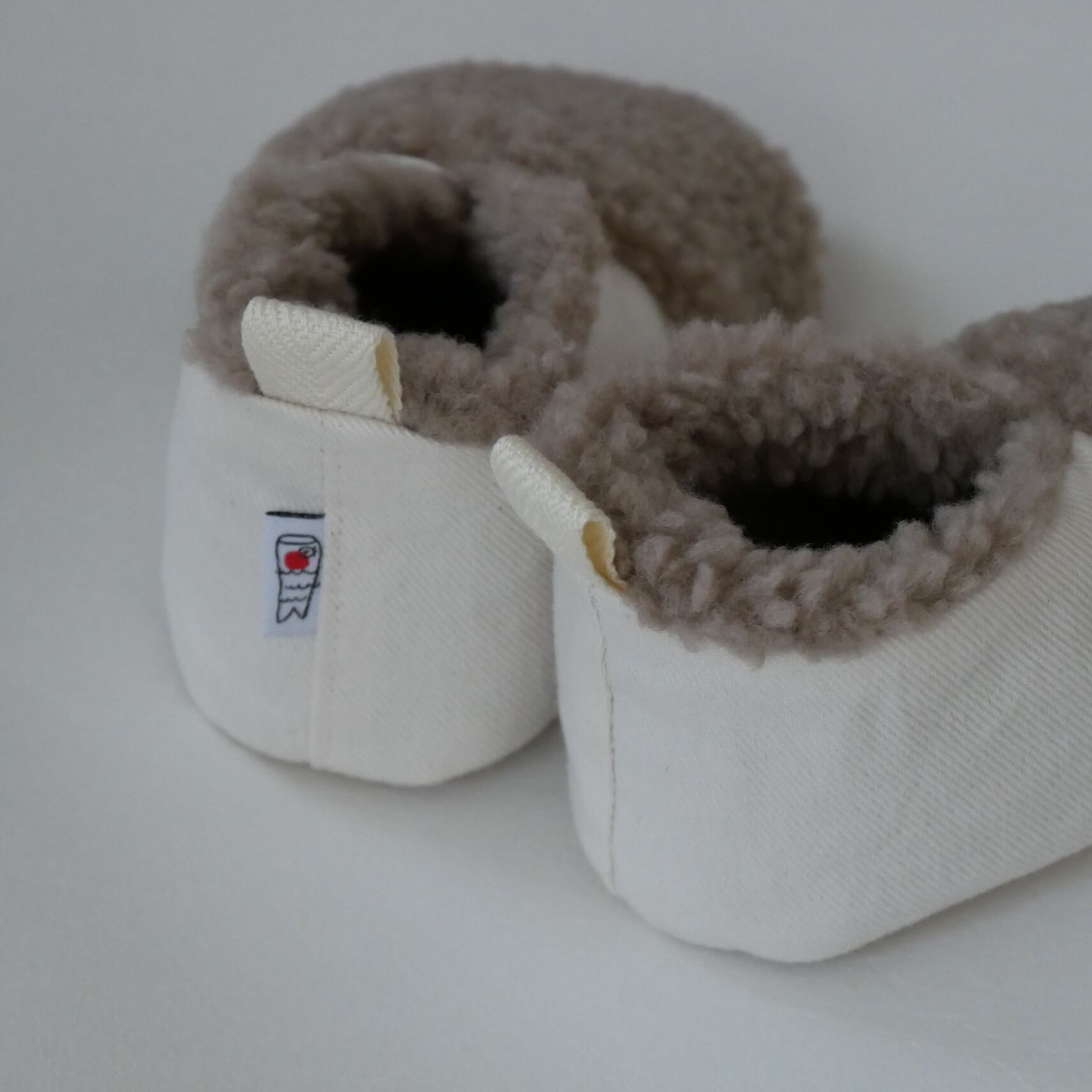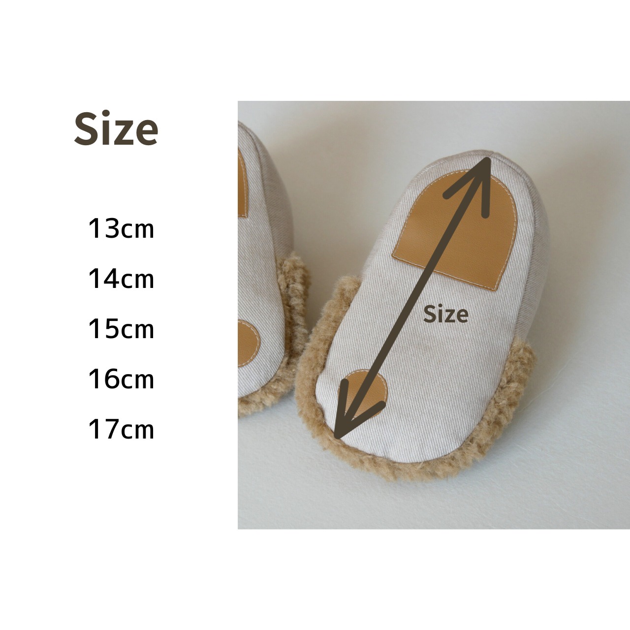 シープボアとブラッシングデニムを切り替えたルームシューズです。