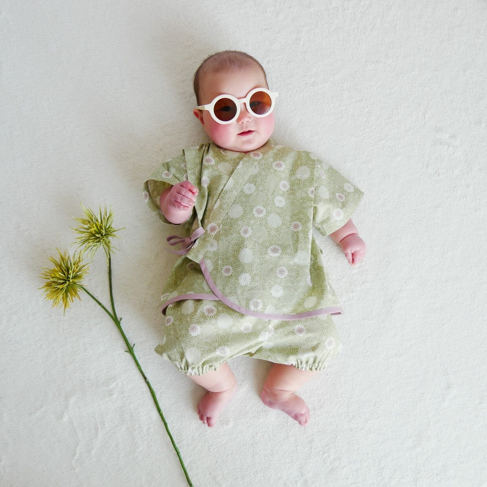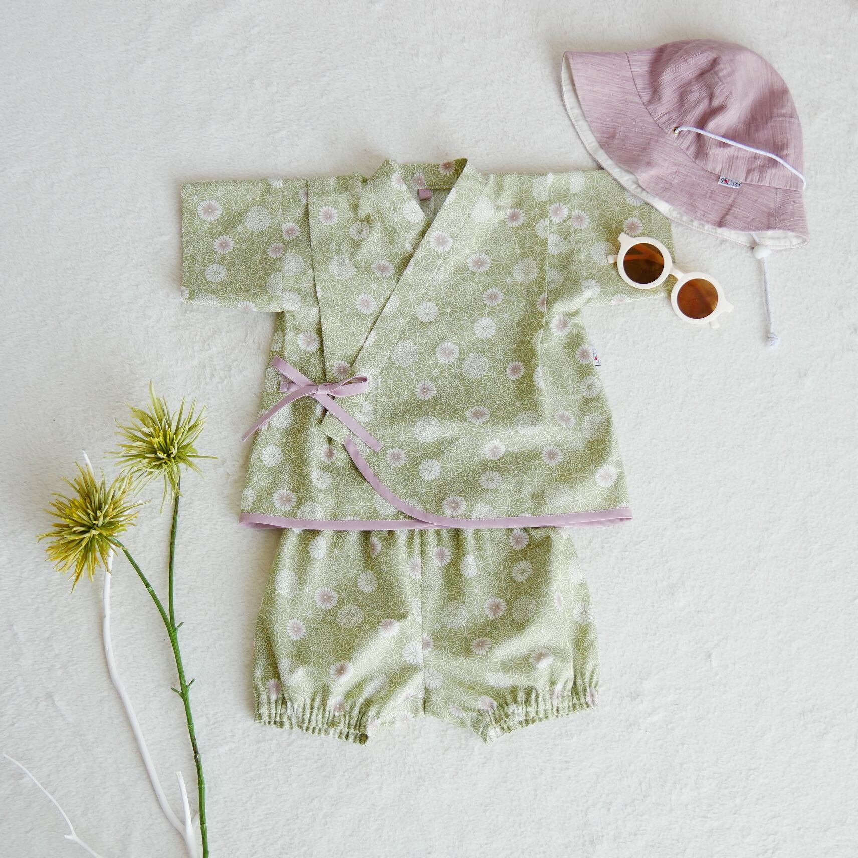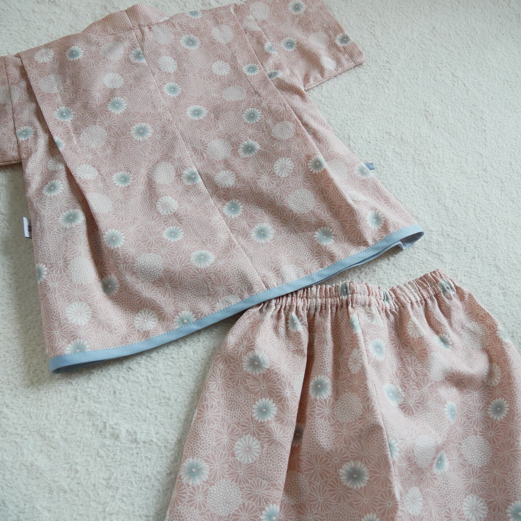 お花をモチーフにした淡くて優しい色合いの半袖タイプの甚平です。