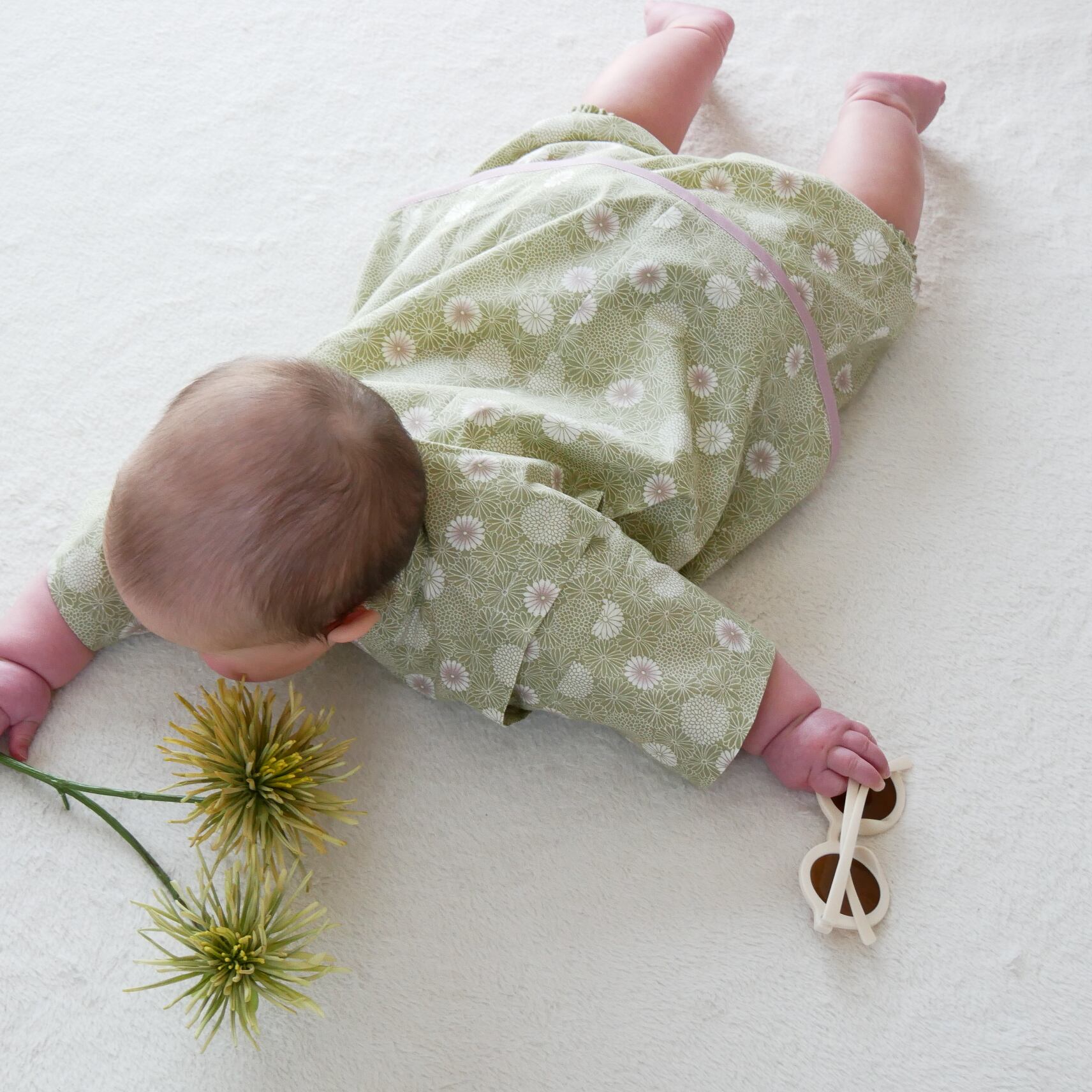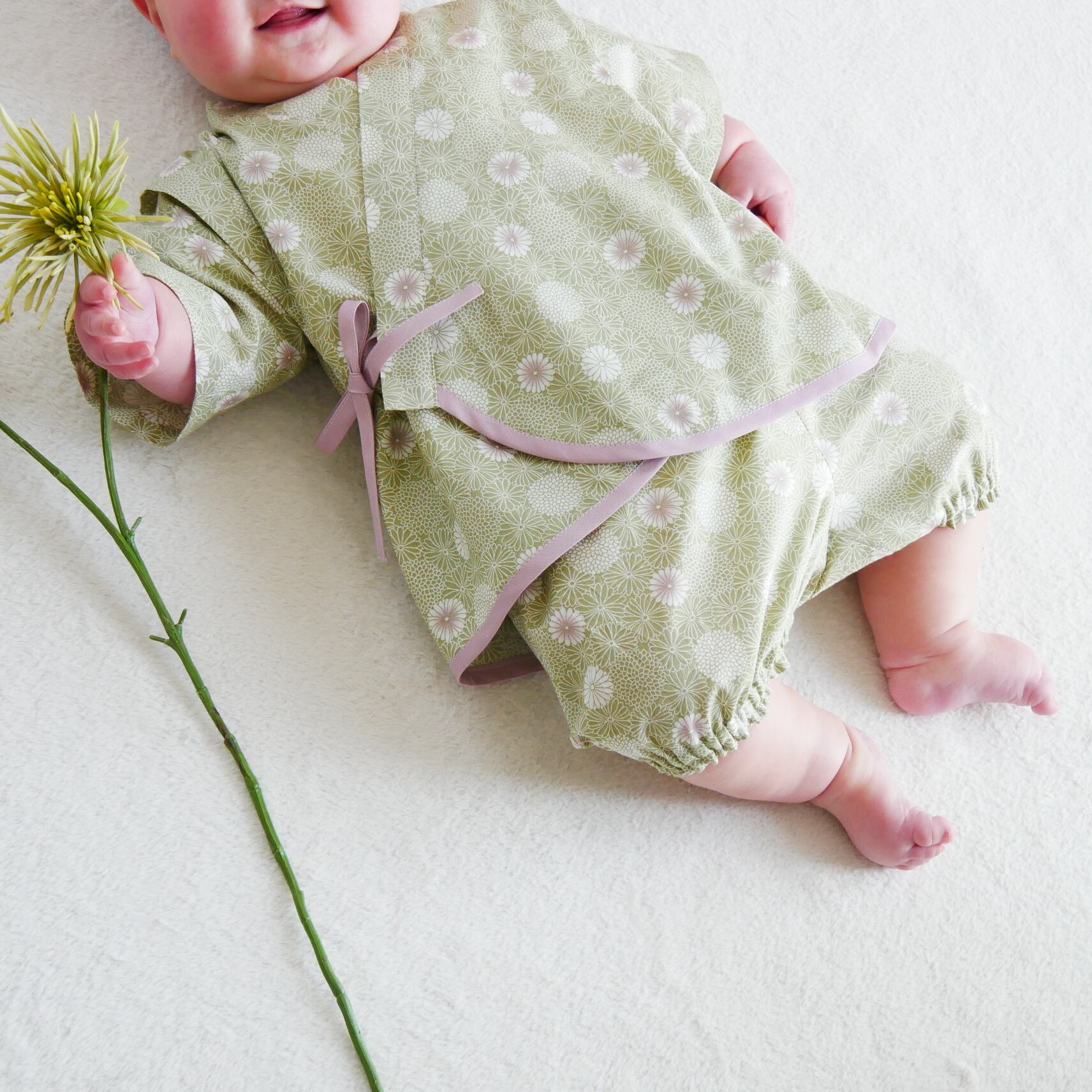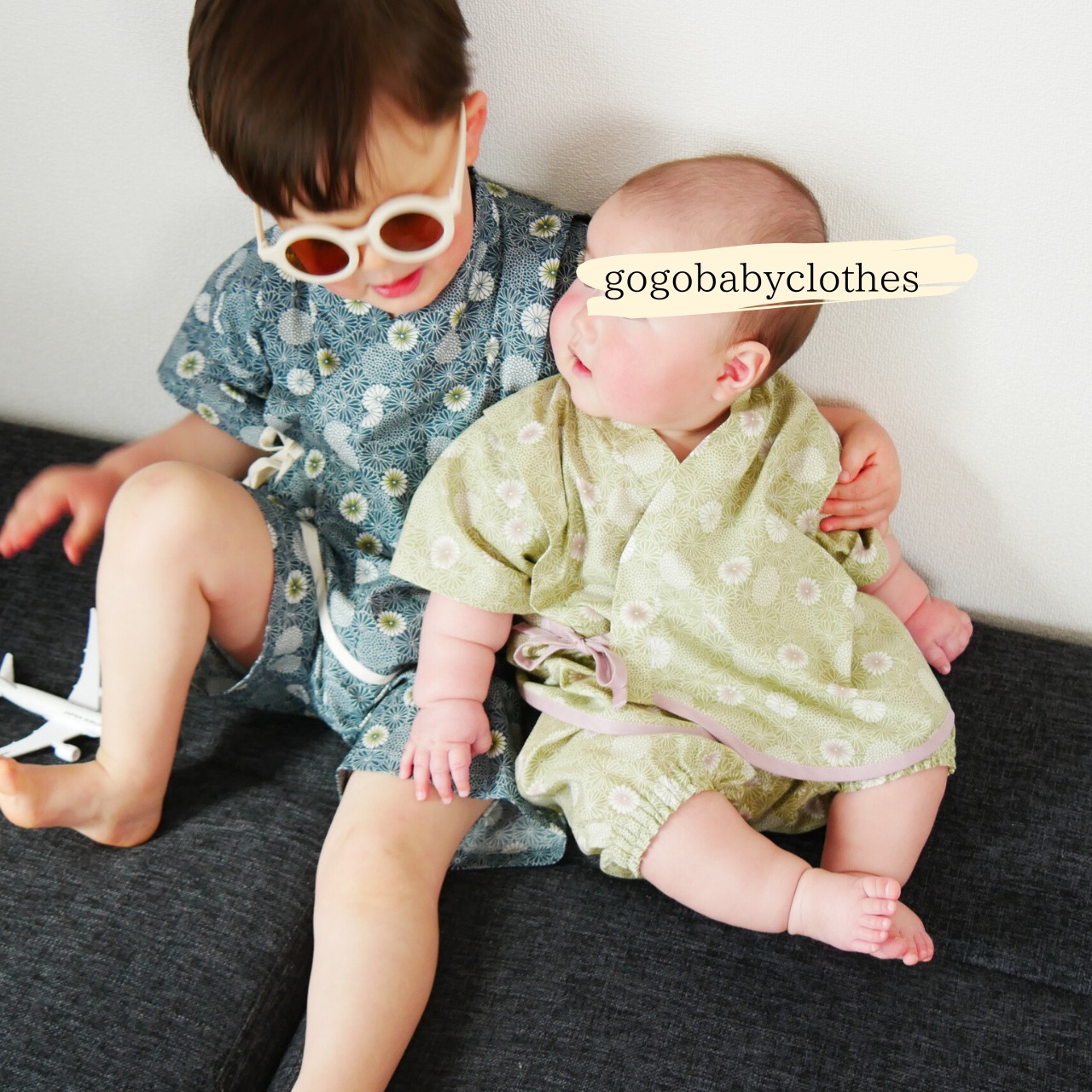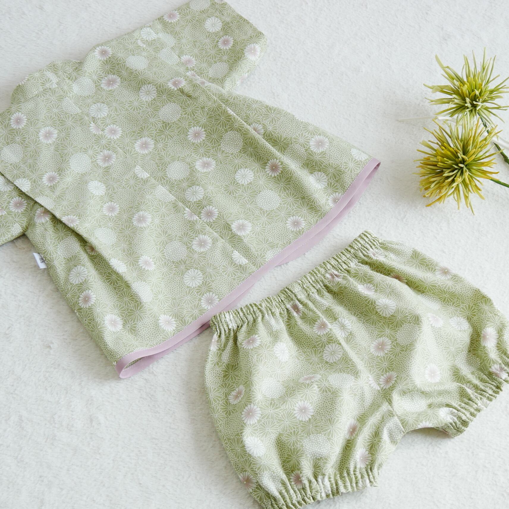 お花をモチーフにした淡くて優しい色合いの半袖タイプの甚平です。