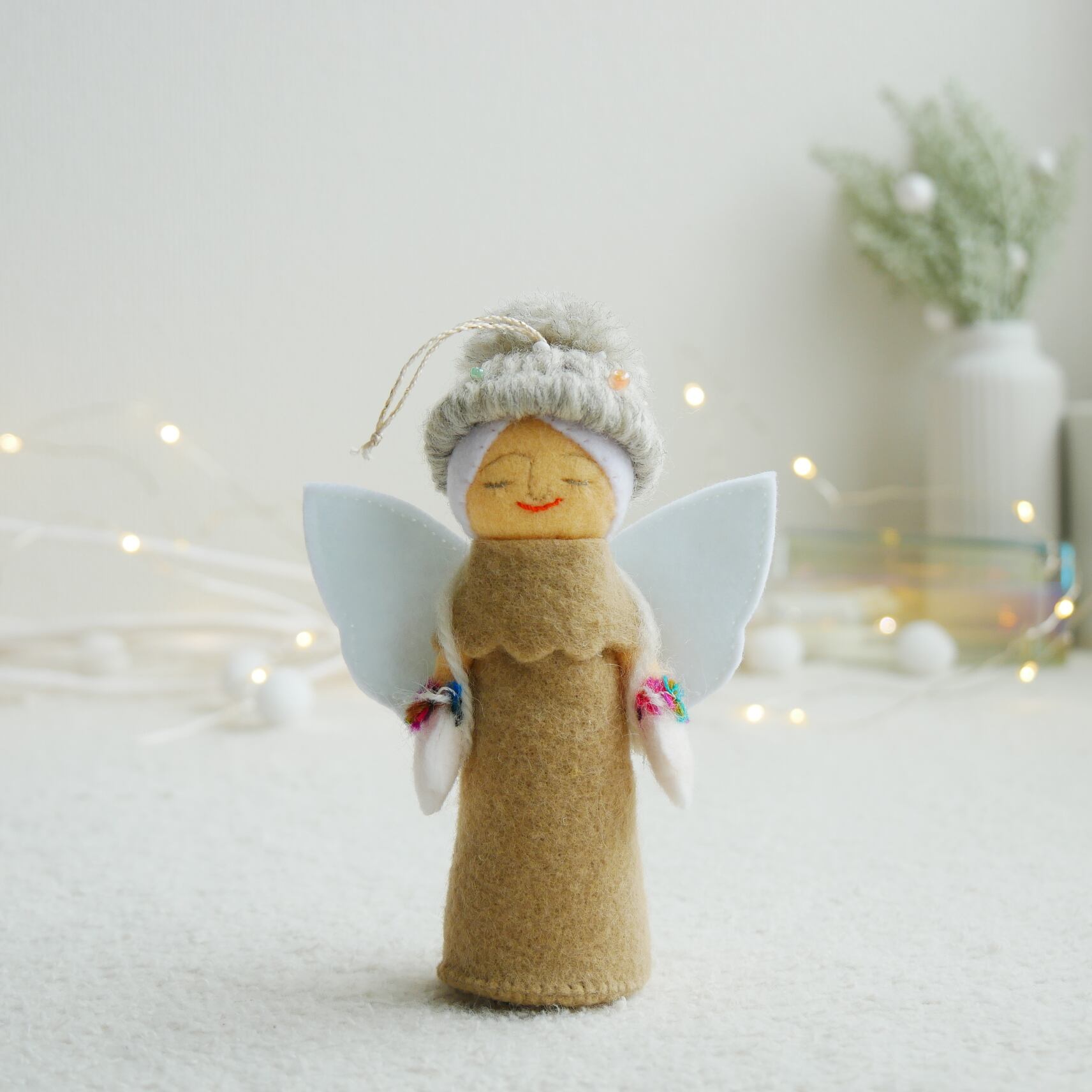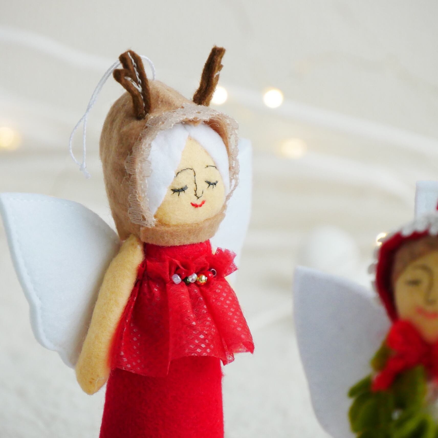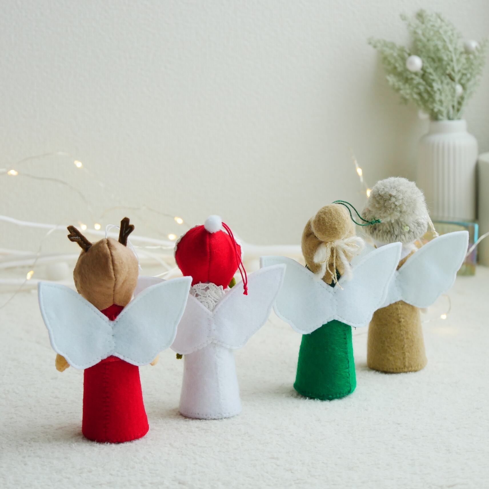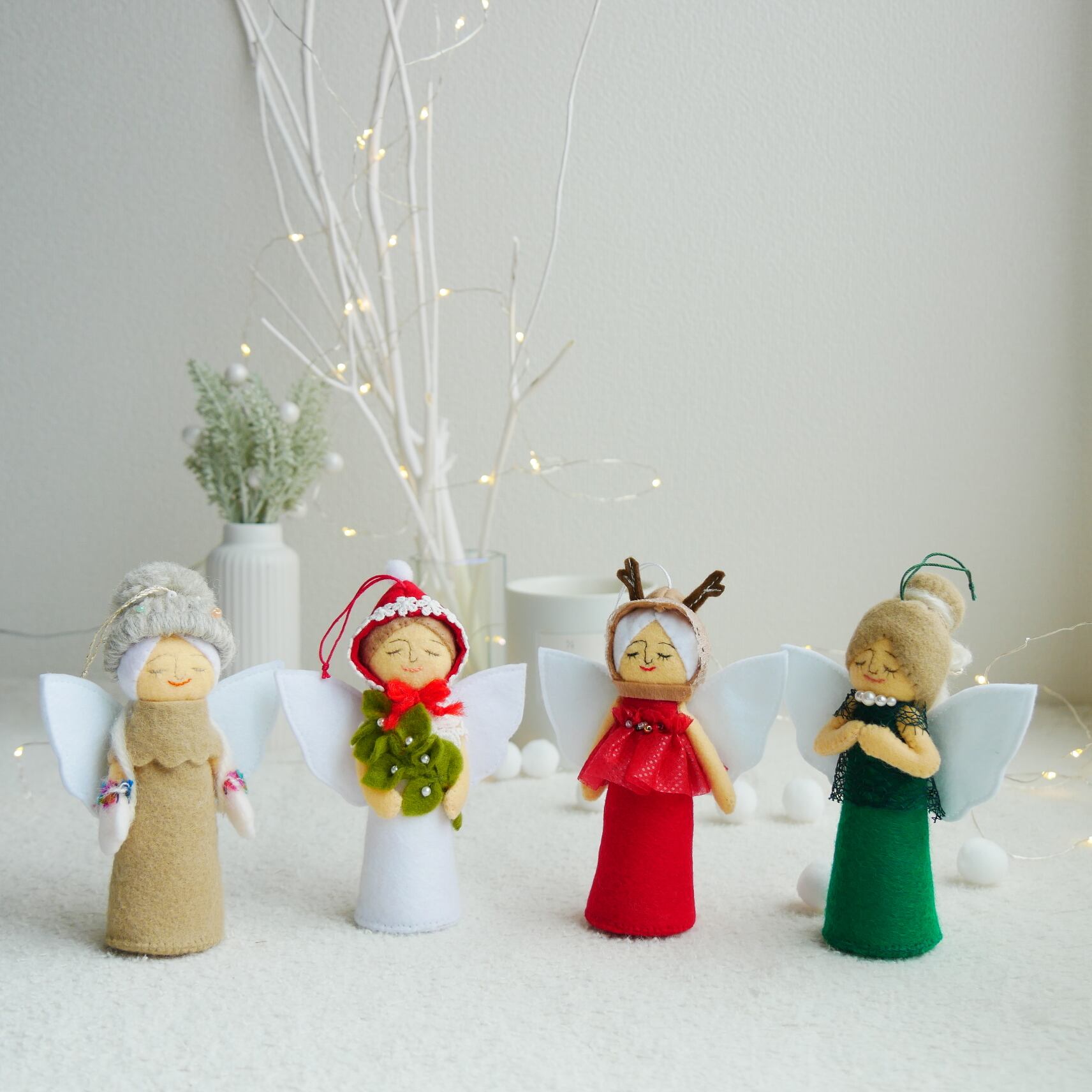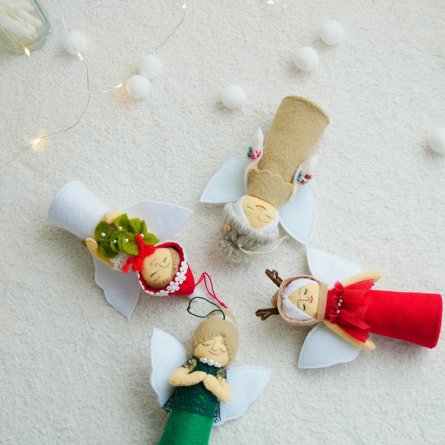 フェルトをメインに使用して作った可愛らしい天使のクリスマスオーナメント4点セットです。