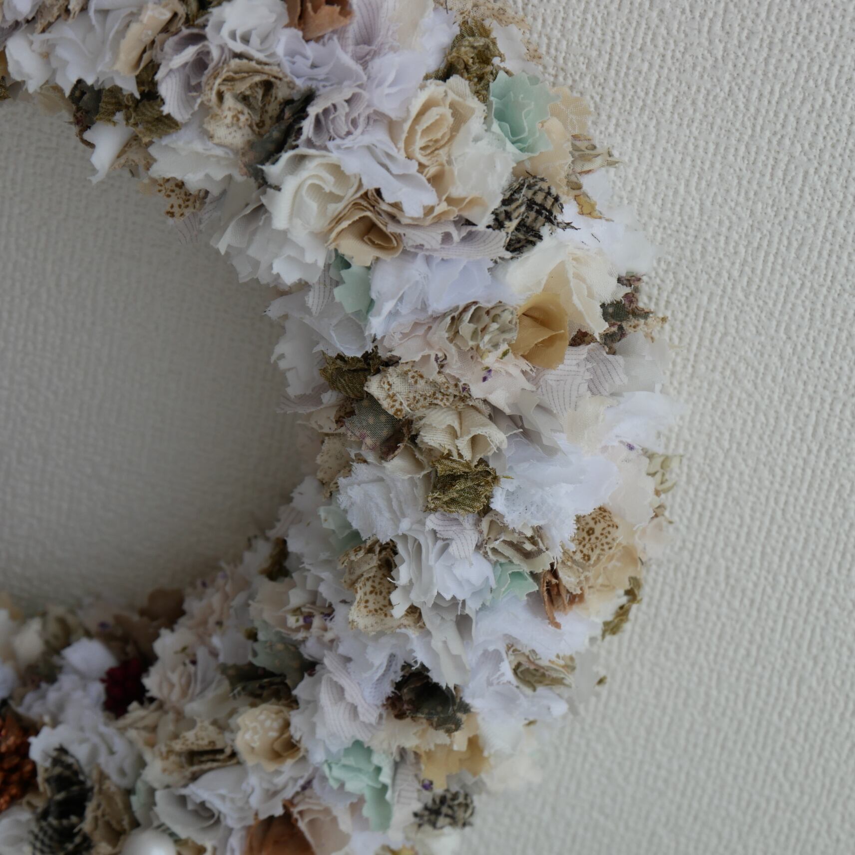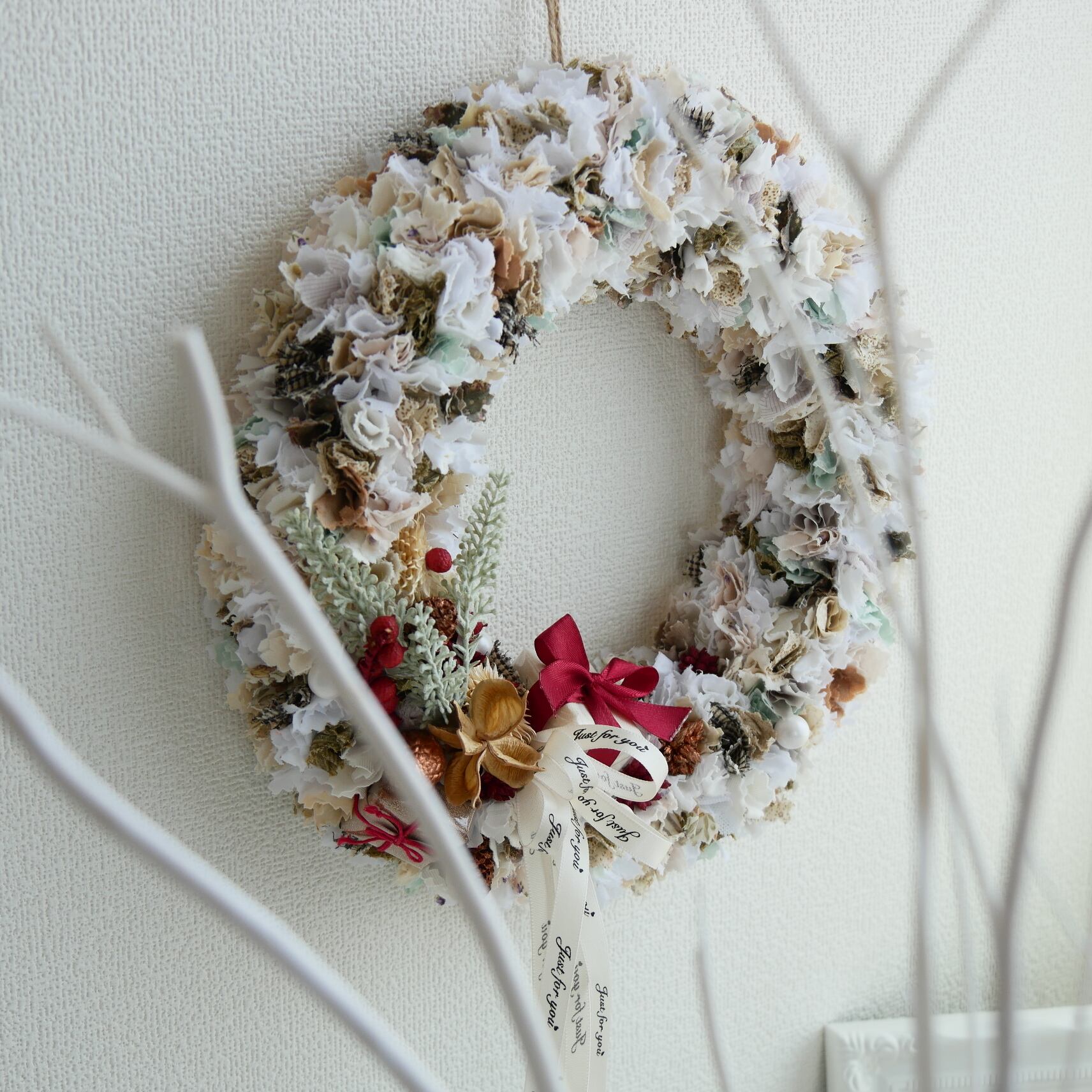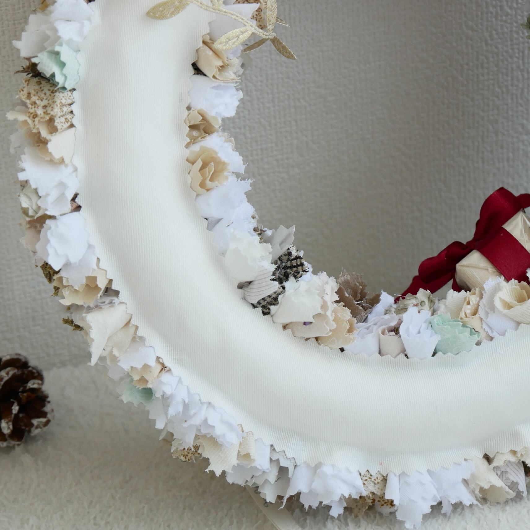 お部屋の空間に一つ置くだけでクリスマスムードを盛り上げてくれる室内用の布リースです。