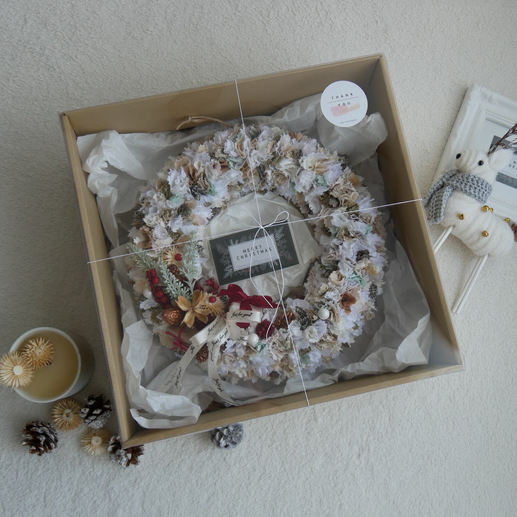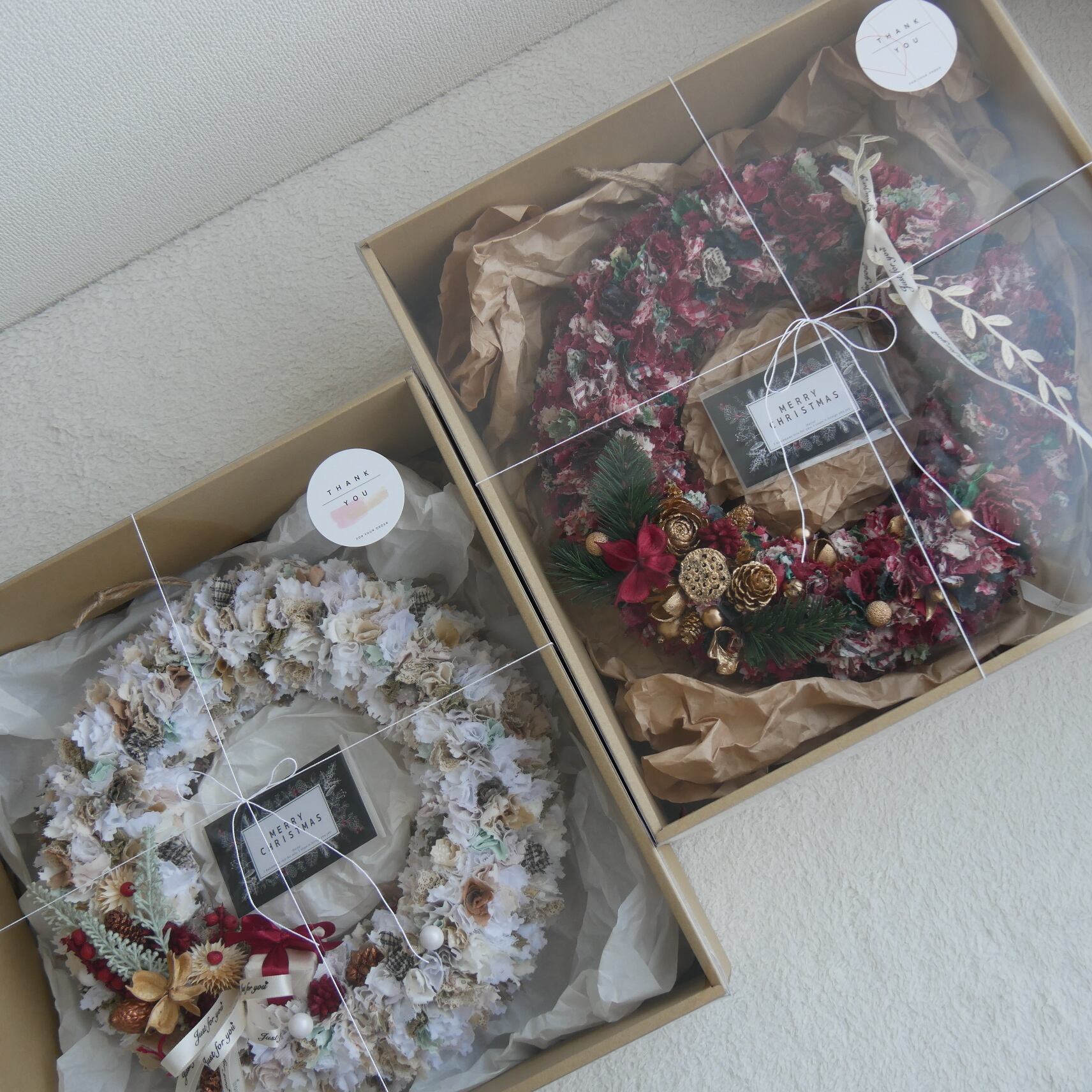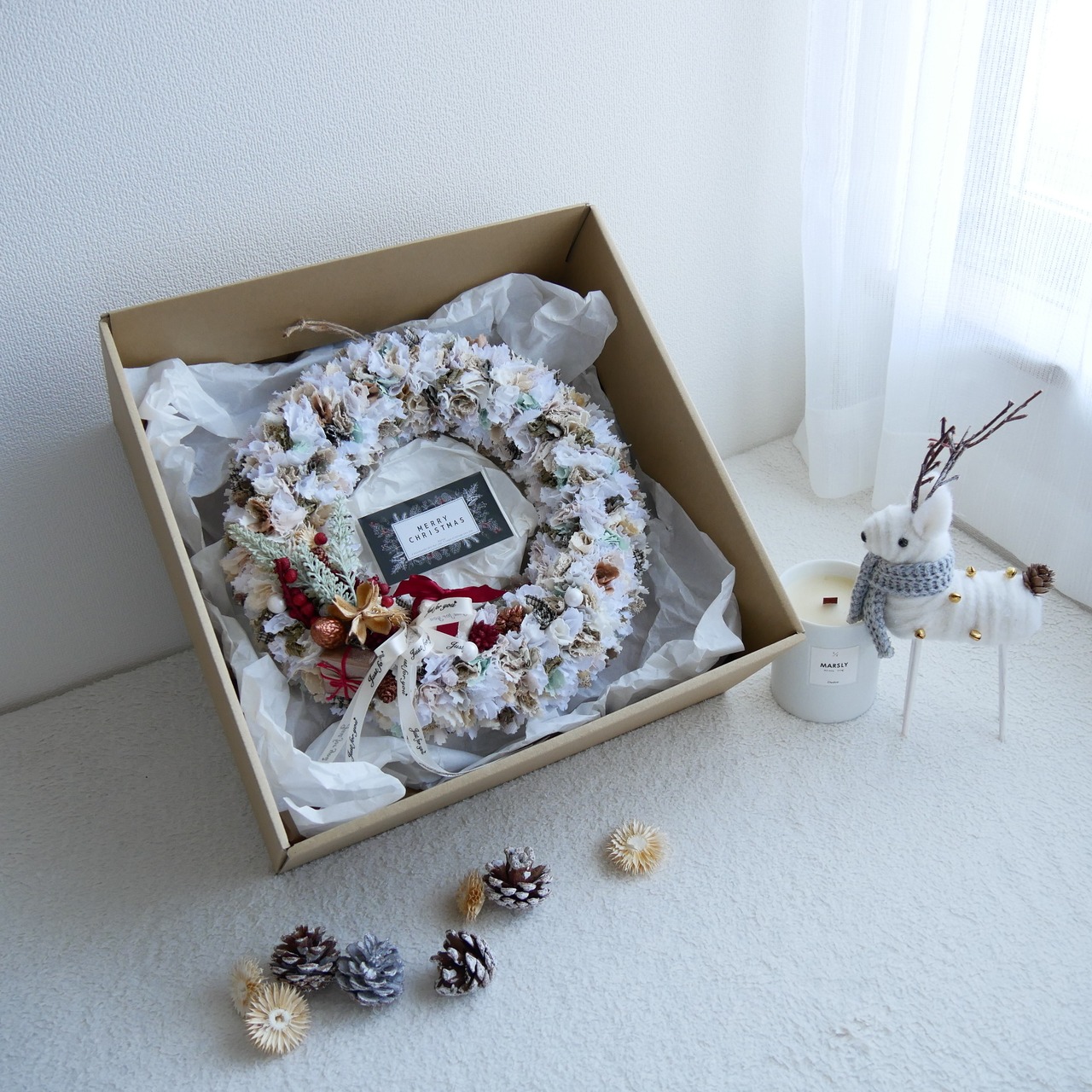 ボリュームがありながら軽量で持ち運びやすく、リースボックスラッピングをしてお届けしますのでクリスマスの贈り物としても最適です。