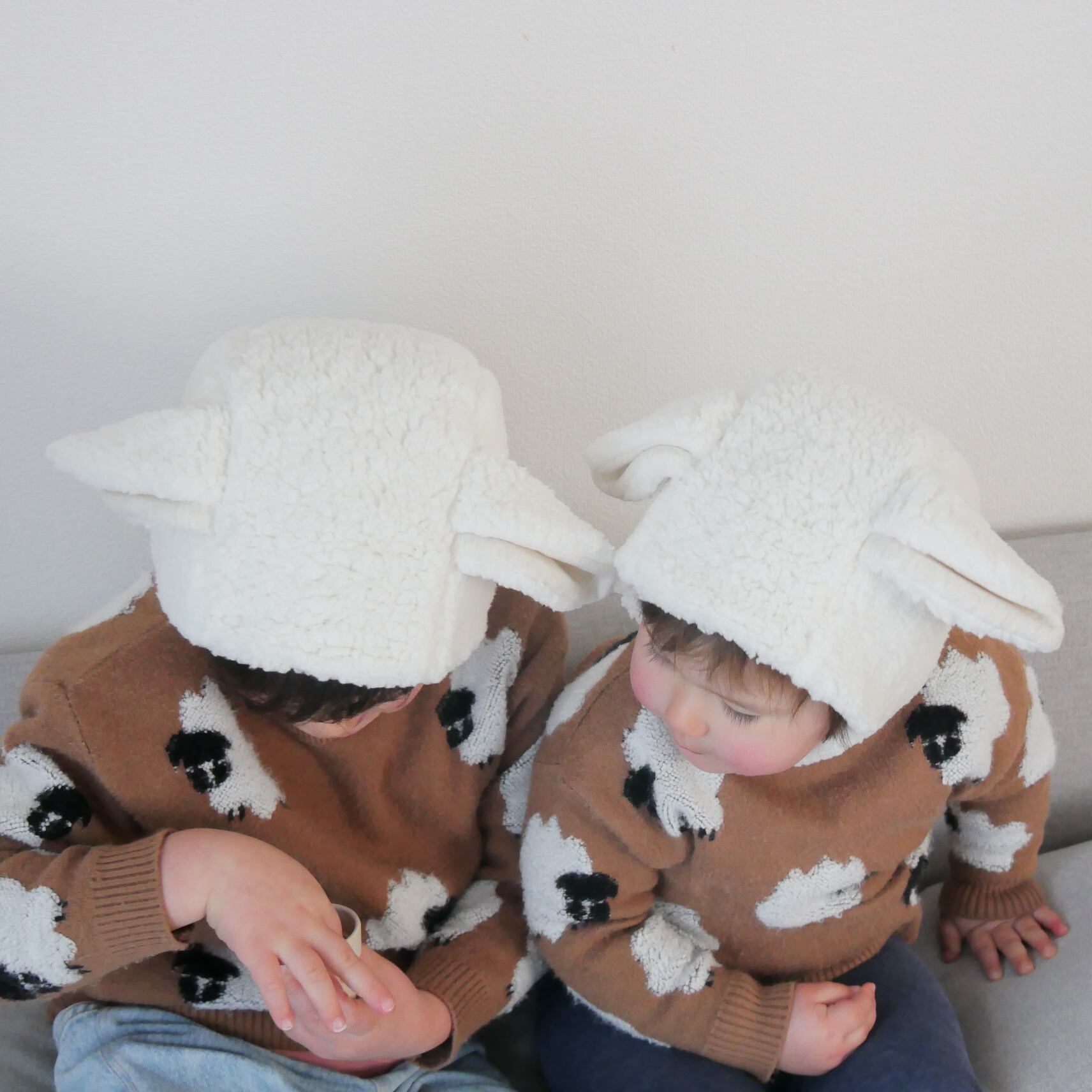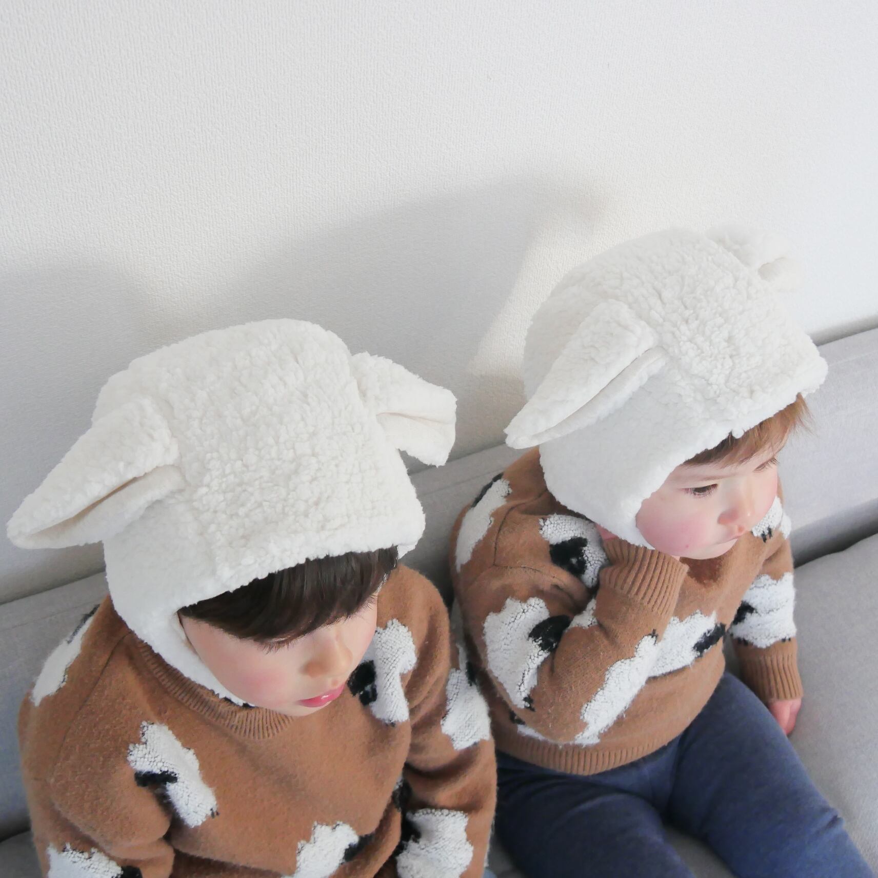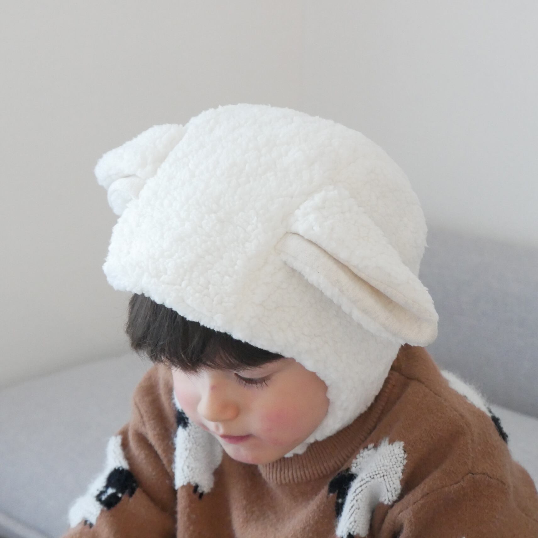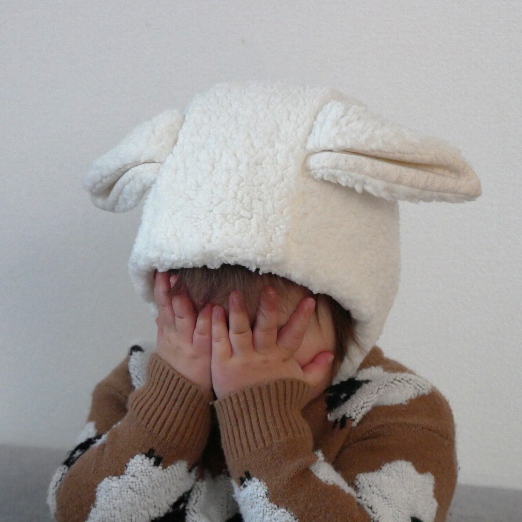 ふんわり柔らかなもこもこシープボアを表地に使用したひつじ耳ハットです。