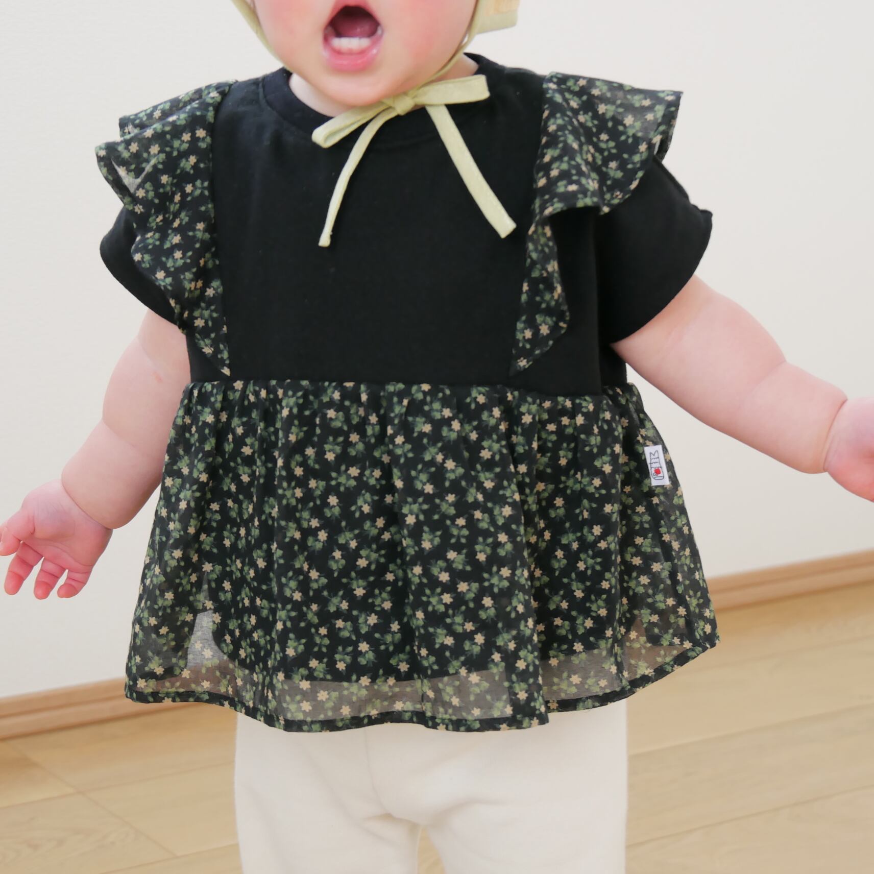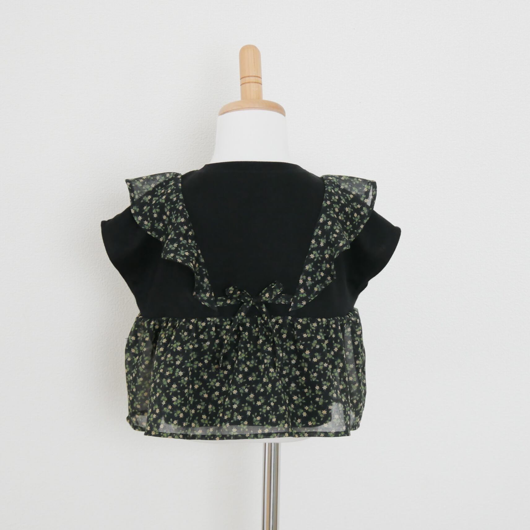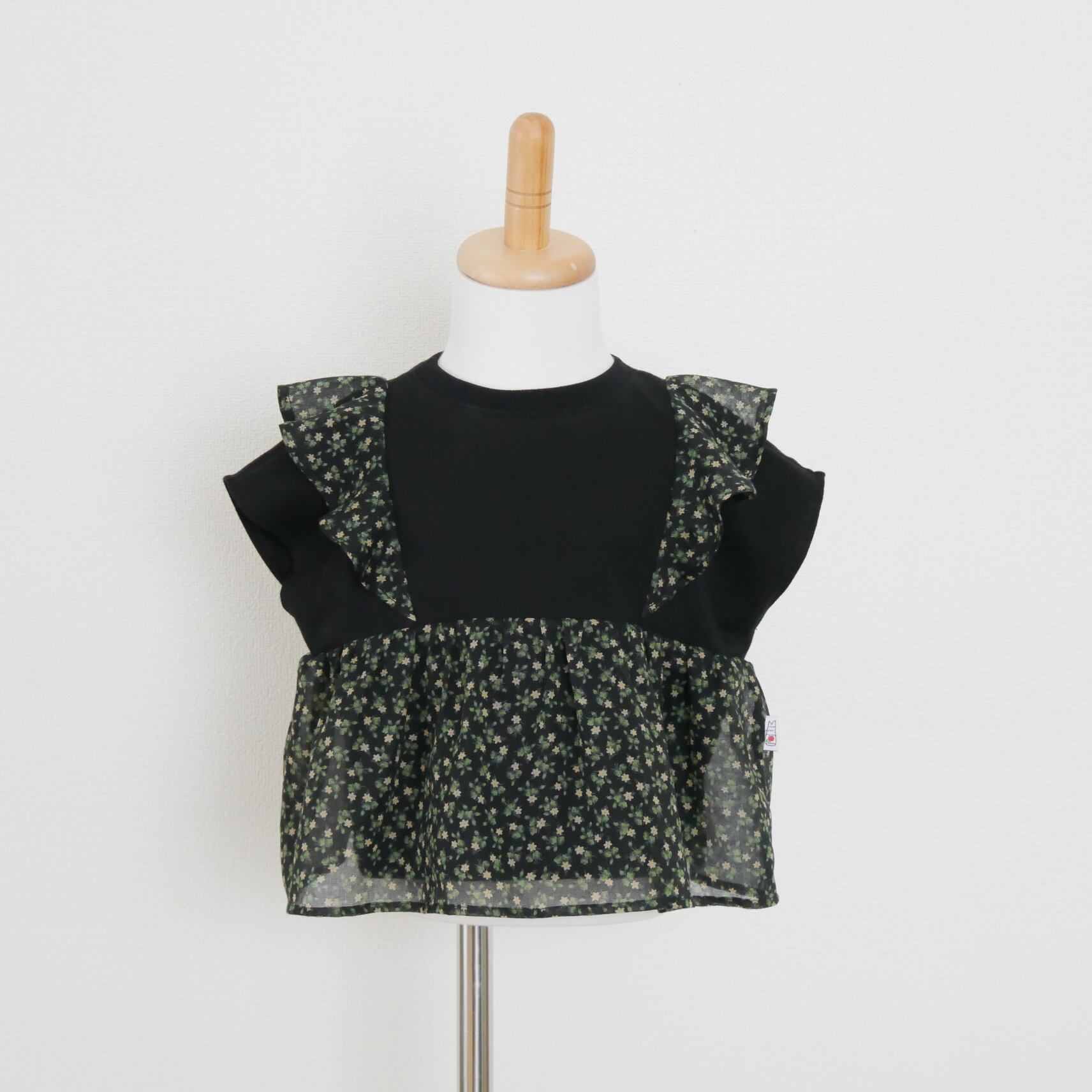 可愛らしい小花柄生地を切り替えたデザインカットソーです。